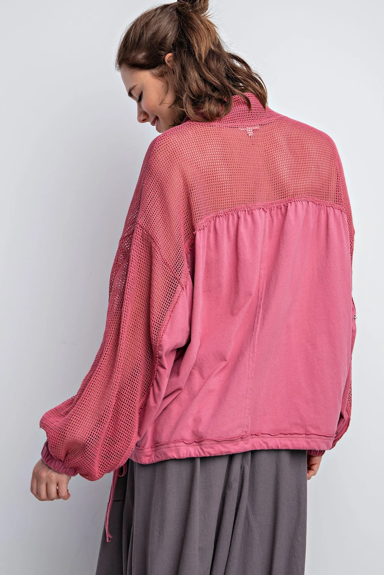 Features: Long Sleeve, Fishnet, Cotton, Button Front, Top