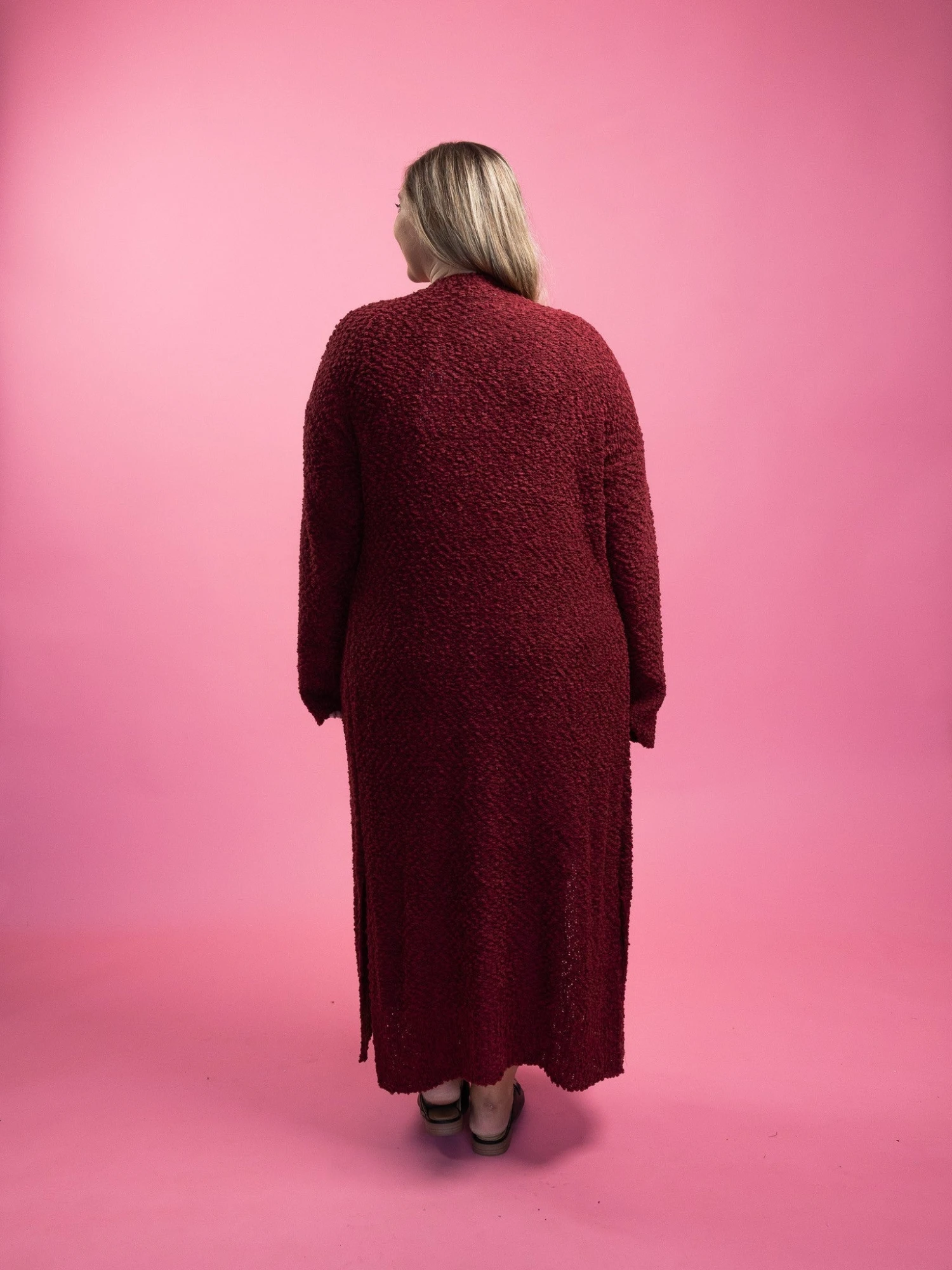 Features: Popcorn Textured, Maxi, Long Sleeves, Open Front