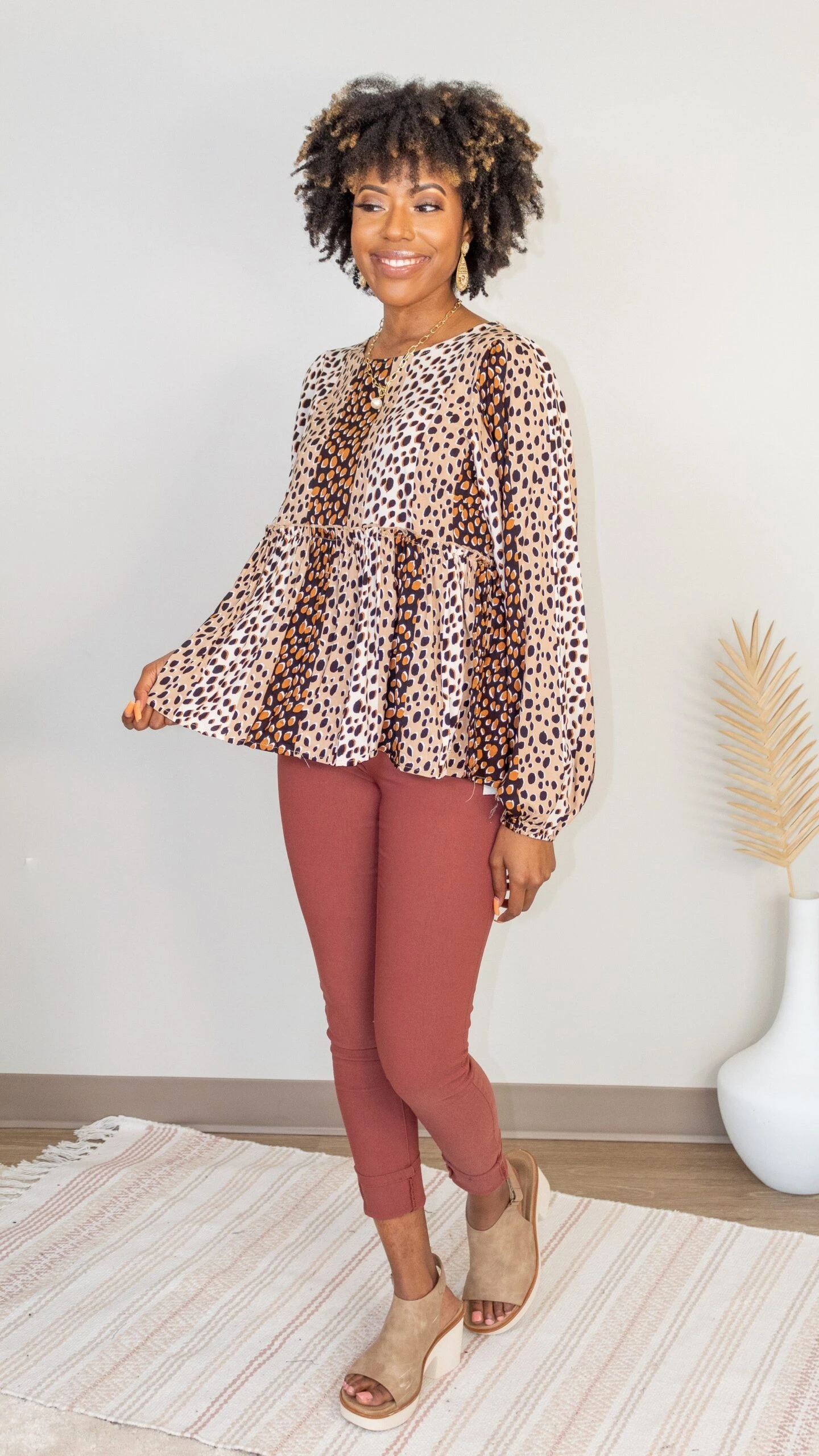 The Long Walks Top has arrived! This dalmatian print is a must have! With a babydoll style, you cannot go wrong! Pair with some denim and you are all set! Snag one before they are gone!