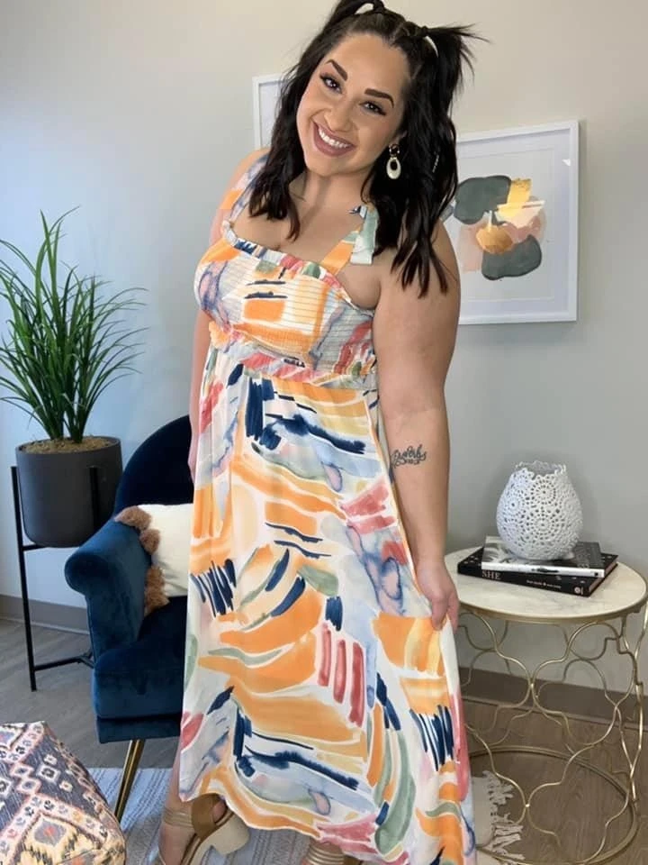 The “Make You Happy Dress” has arrived! This printed dress is a must have! Absolutely perfect for the spring and summer seasons, the possibilities are endless here! Snag one before the sell out, you know they will!