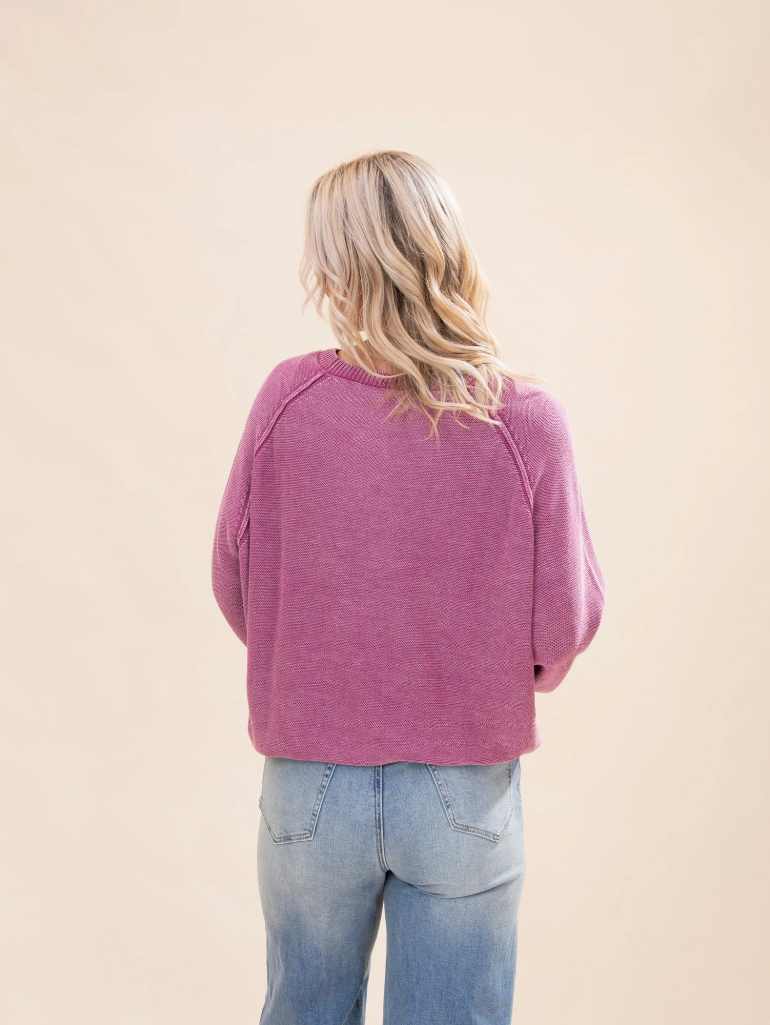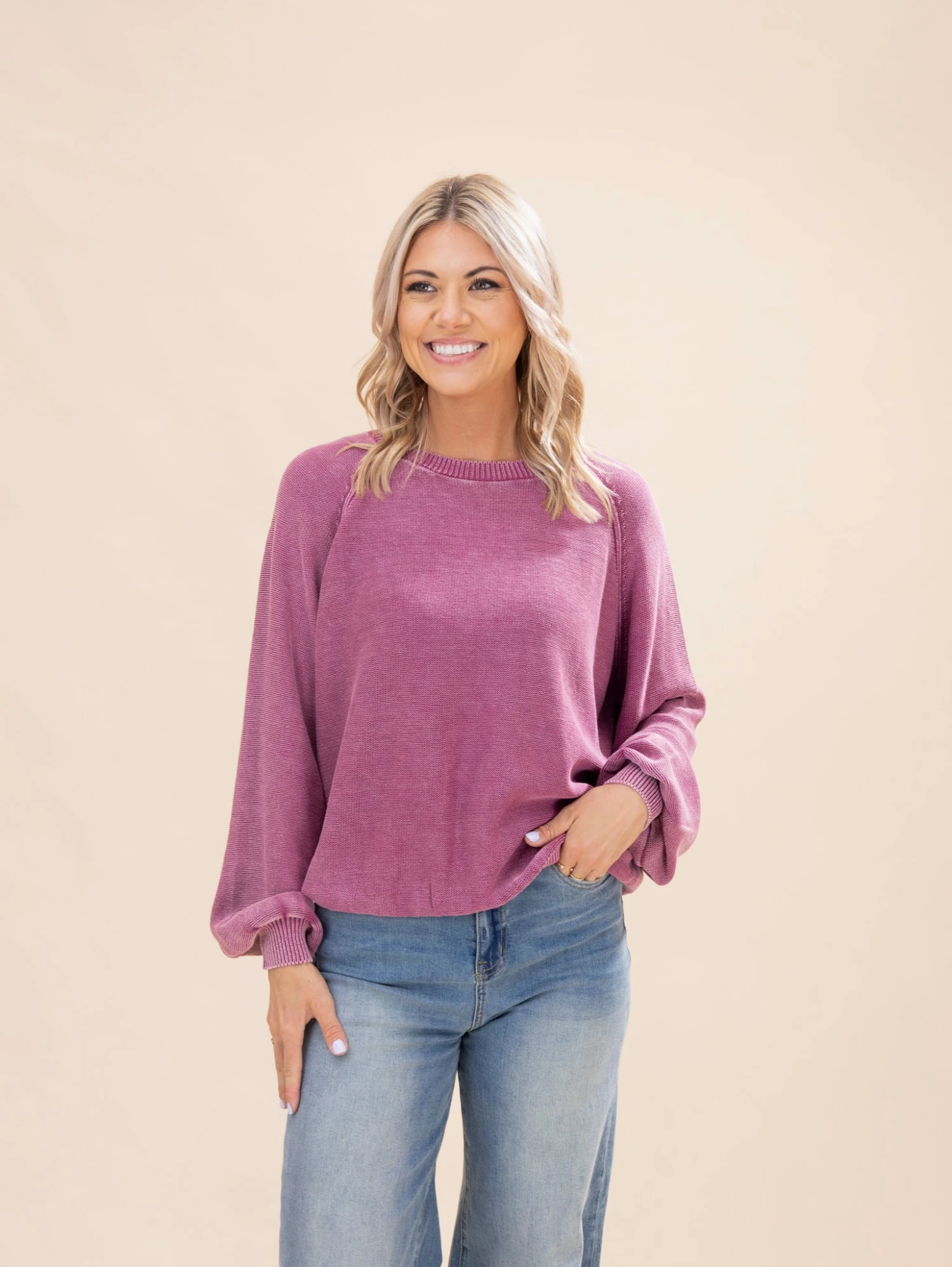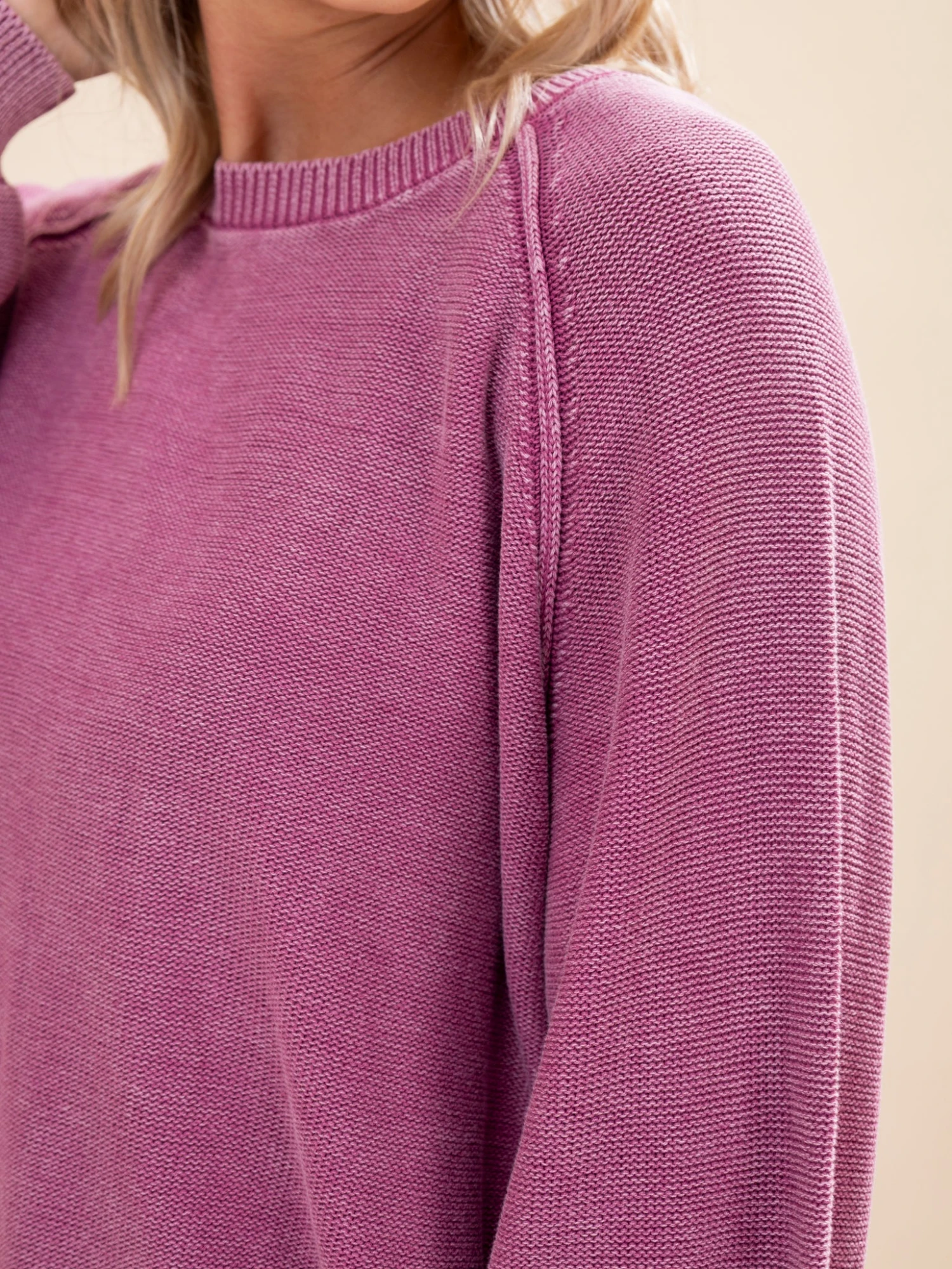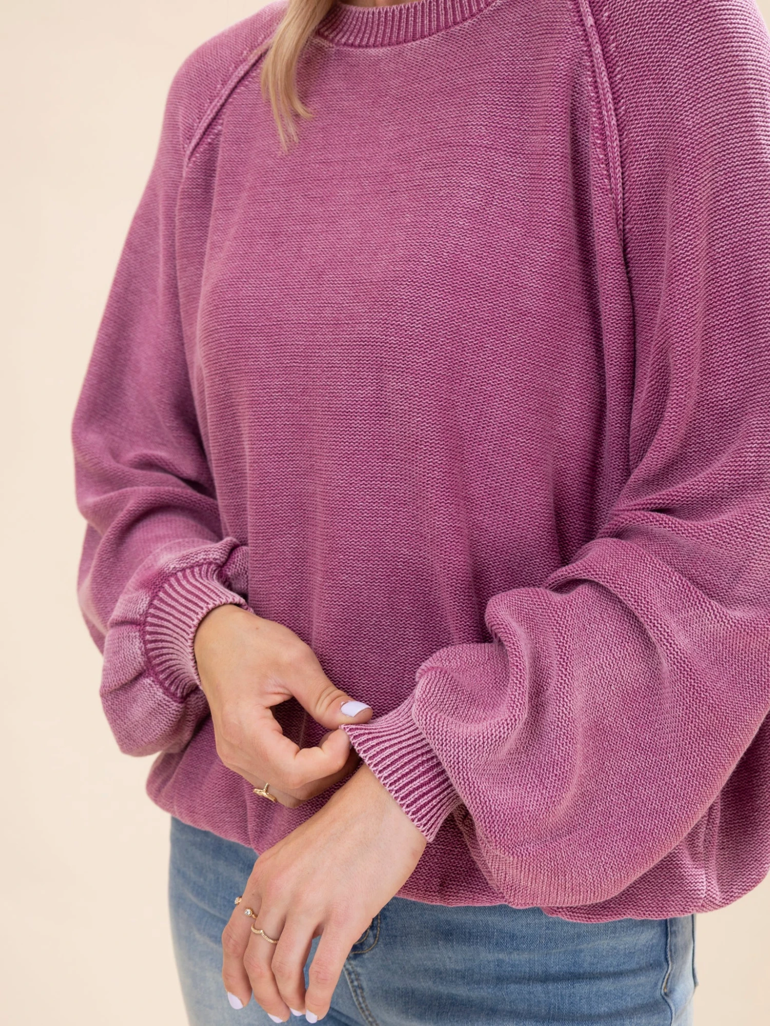 Features: Round Neck, Long Sleeves,Mineral Washed Knit Sweater