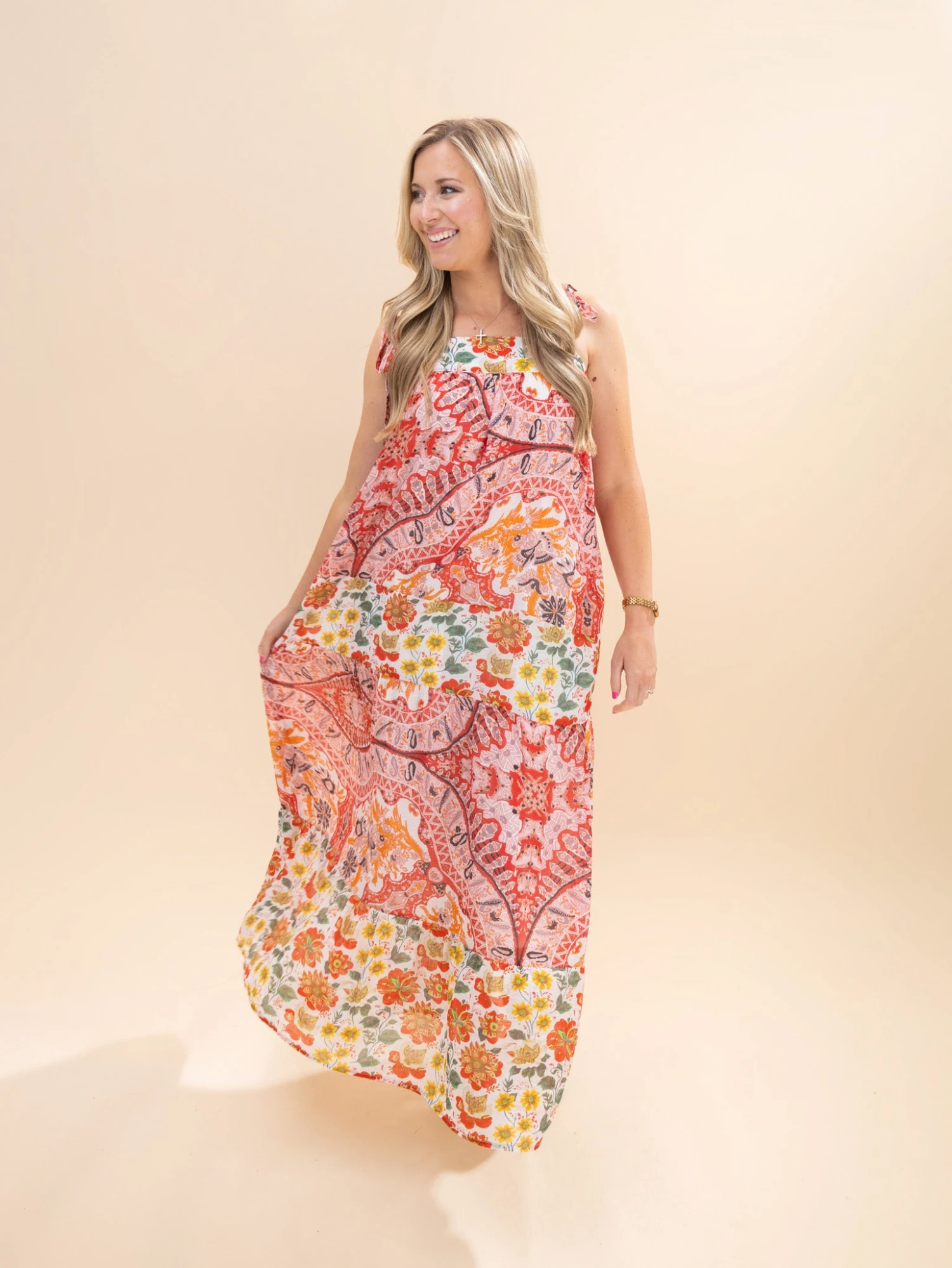 Features: Square Neck, Tie Straps, Pockets, Lined