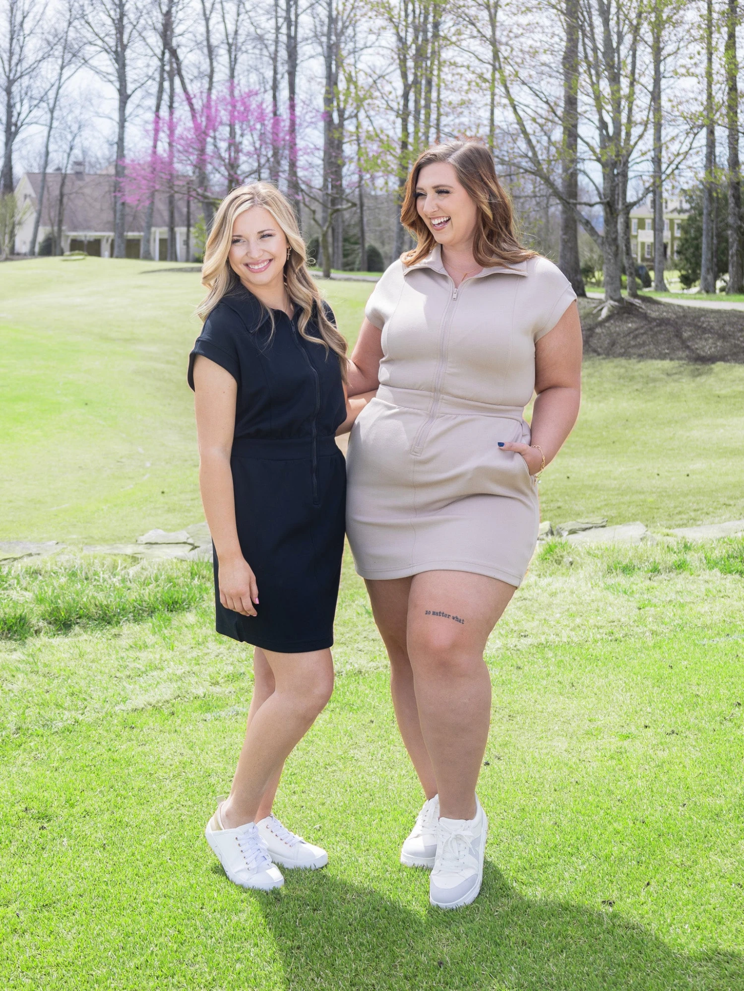 Features: Collar, Half Zip, Short Sleeve, Pockets, Modal Scuba Dress