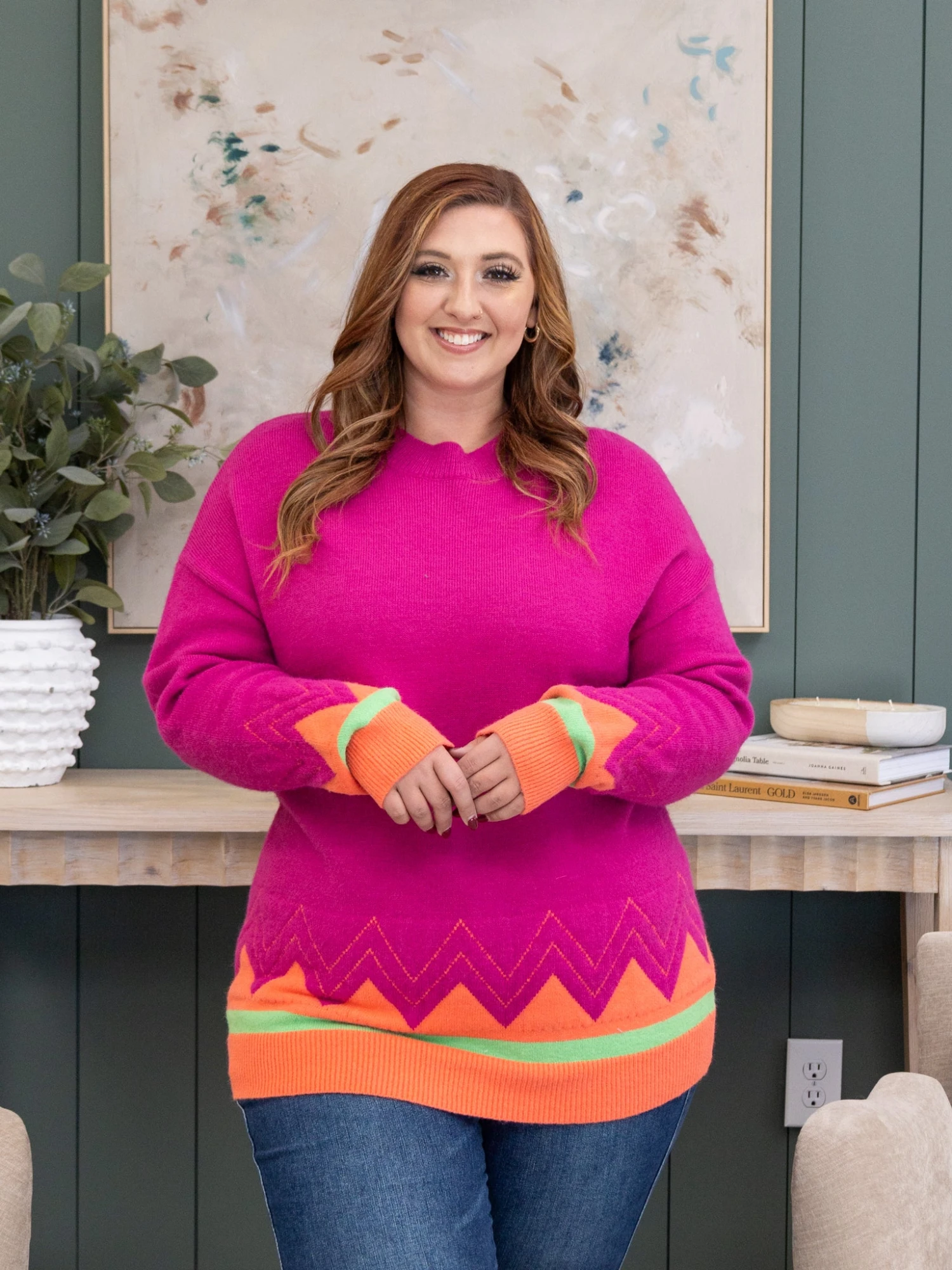 Features: Multicolor Pattern, Long Sleeve, Round Neck