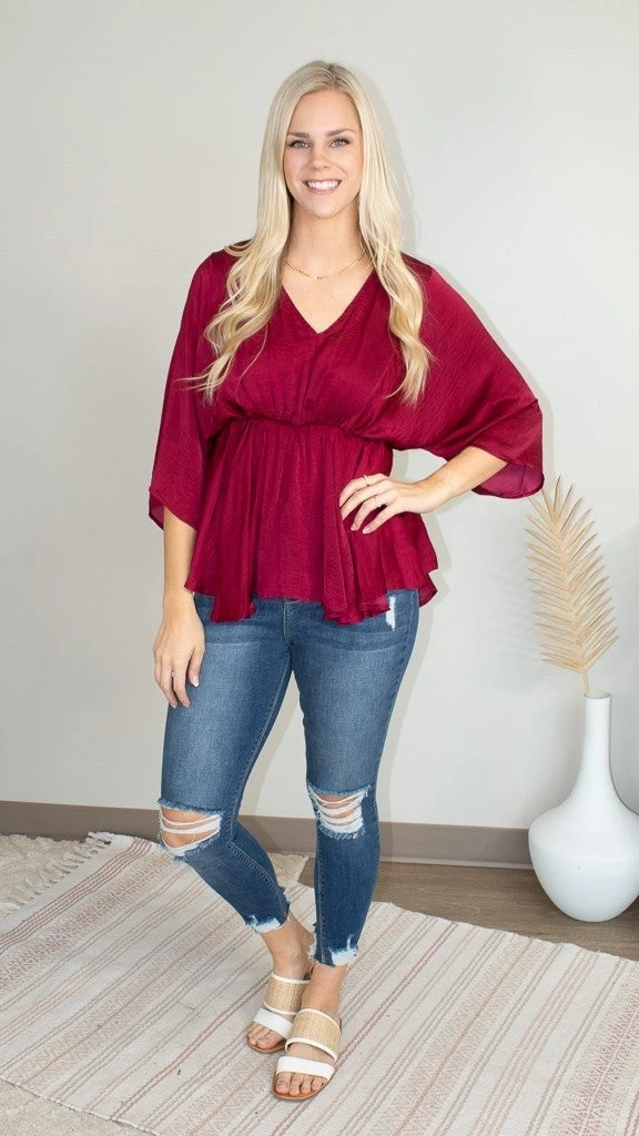 The No Other Way Top is unique and flattering. It has a cinched waist and wide sleeves. These colors are giving us serious Fall vibes!! Which color will you choose?