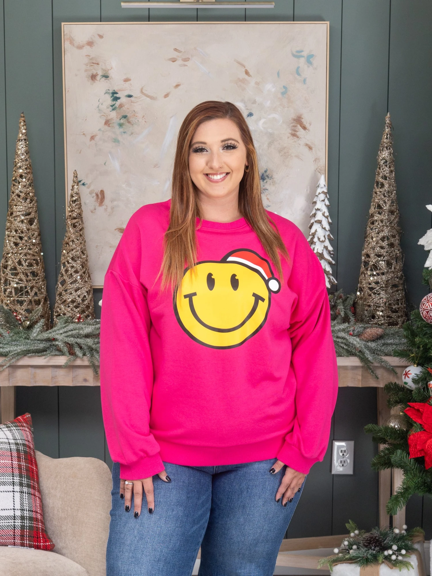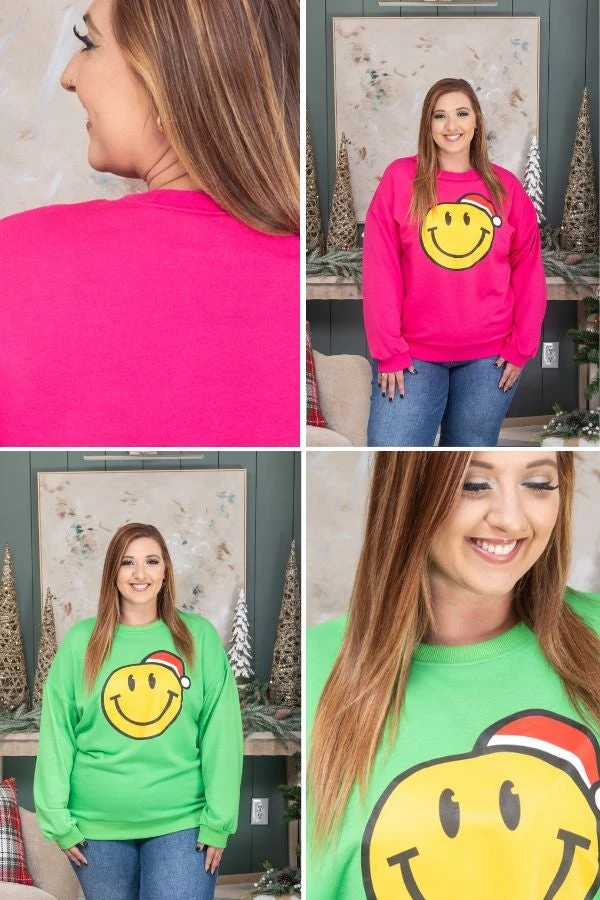 Features: Crewneck,Long Sleeves,Drop Shoulder,Smiley Face Santa,Lightweight Sweatshirt