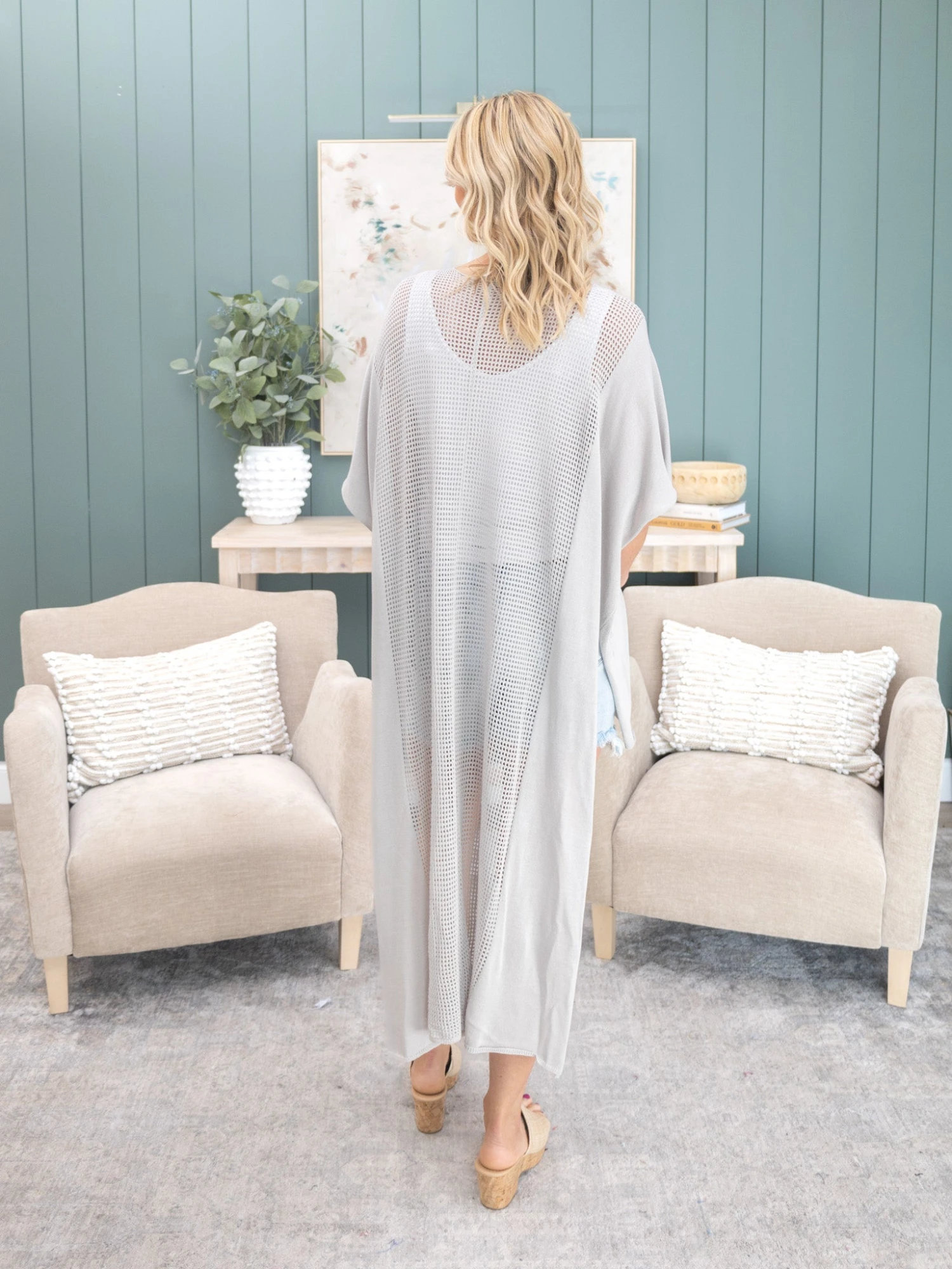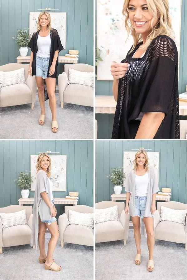Features: Open Front, Hi Lo, Open Knit, Drop Shoulder, Wide Short Sleeves