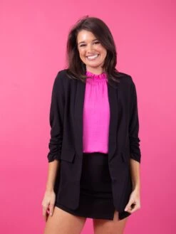 Ruched 3/4 Sleeve Open Front Collared Blazer | S – 3XL Set W/ Sku51539