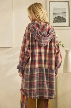Washed Plaid Button Down Hoodie Shirt | S – XL Oli & Hali