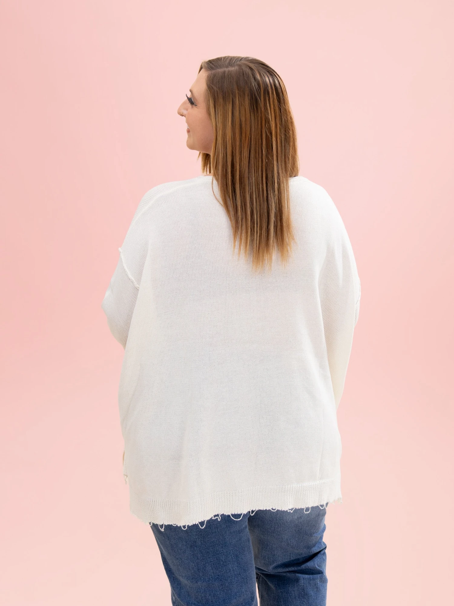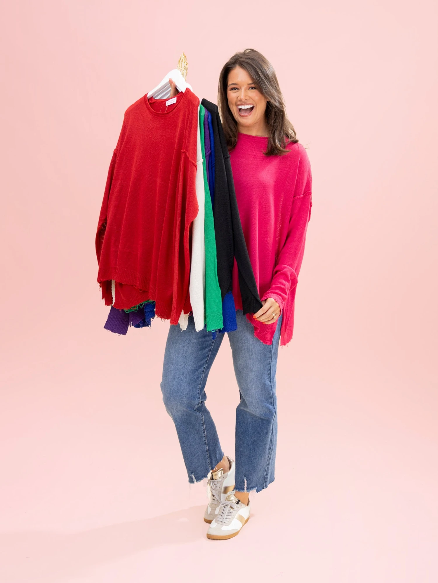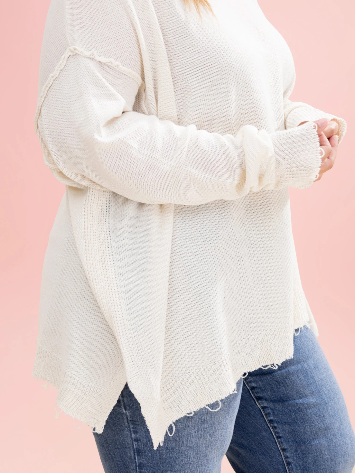 Features: Round Neck, Long Sleeves, Exposed Seam Detail, Side Slits, Boxy Hem, Oversized