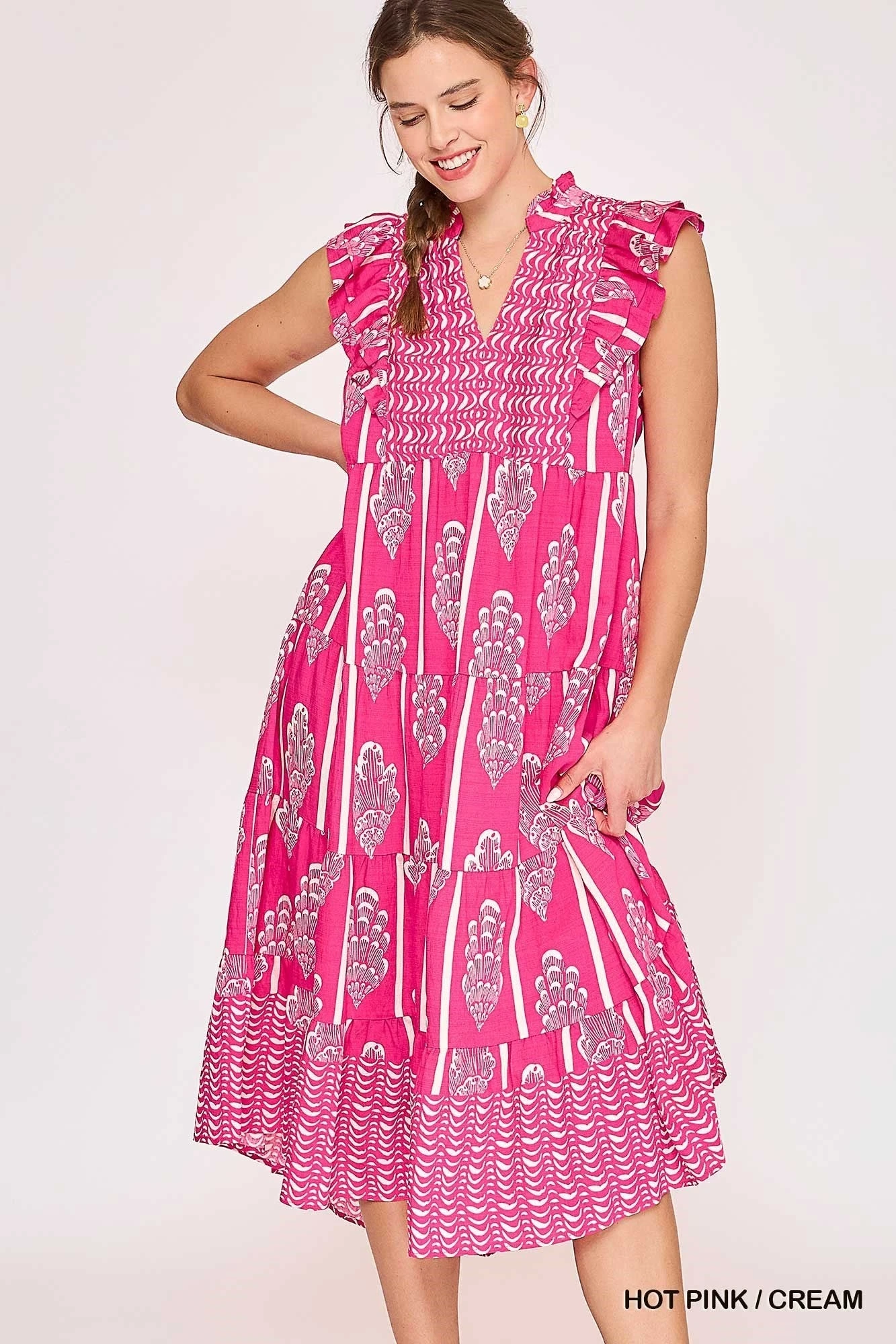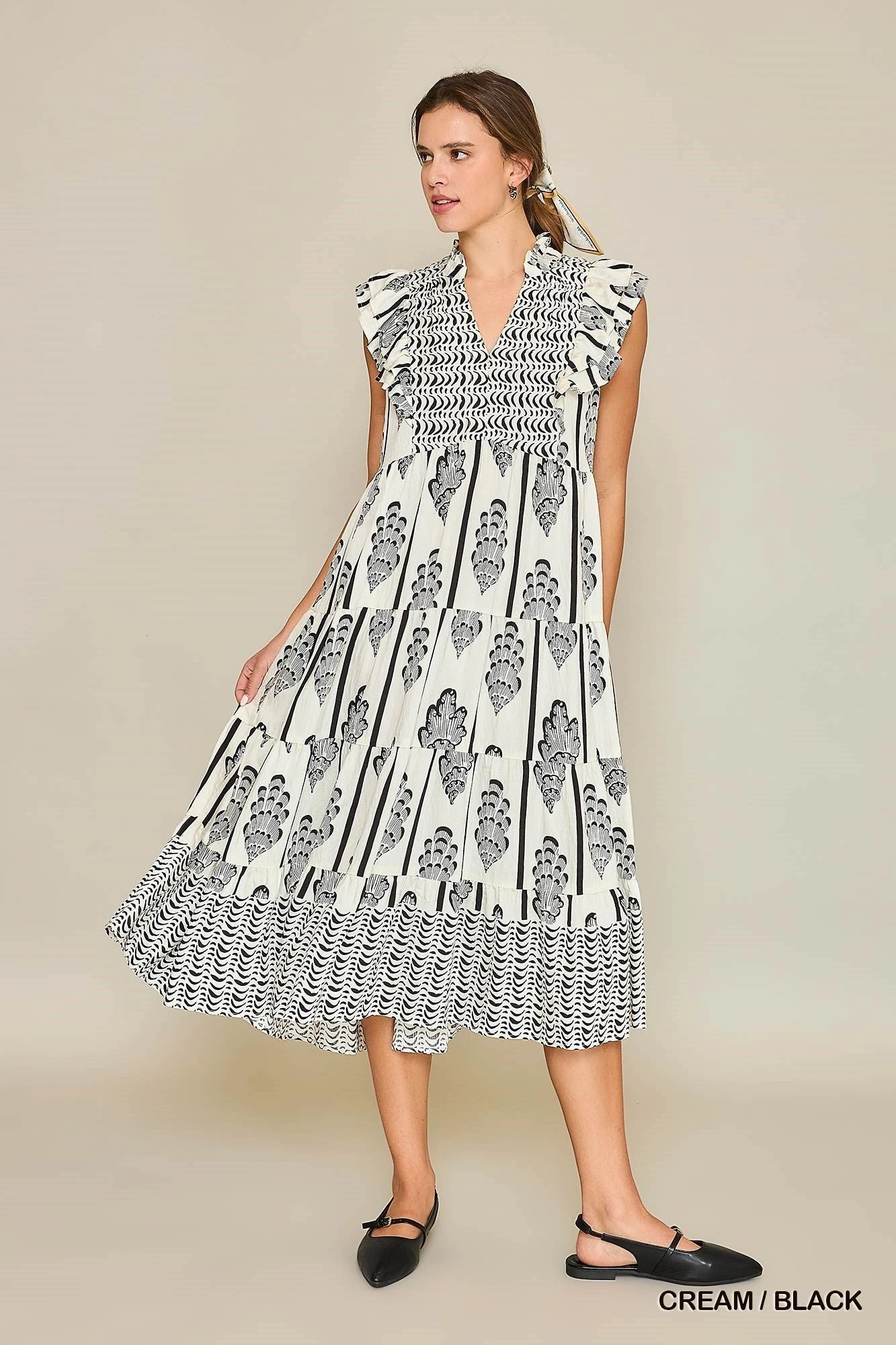 Features: Printed, Ruffle Sleeve, Midi, Dress