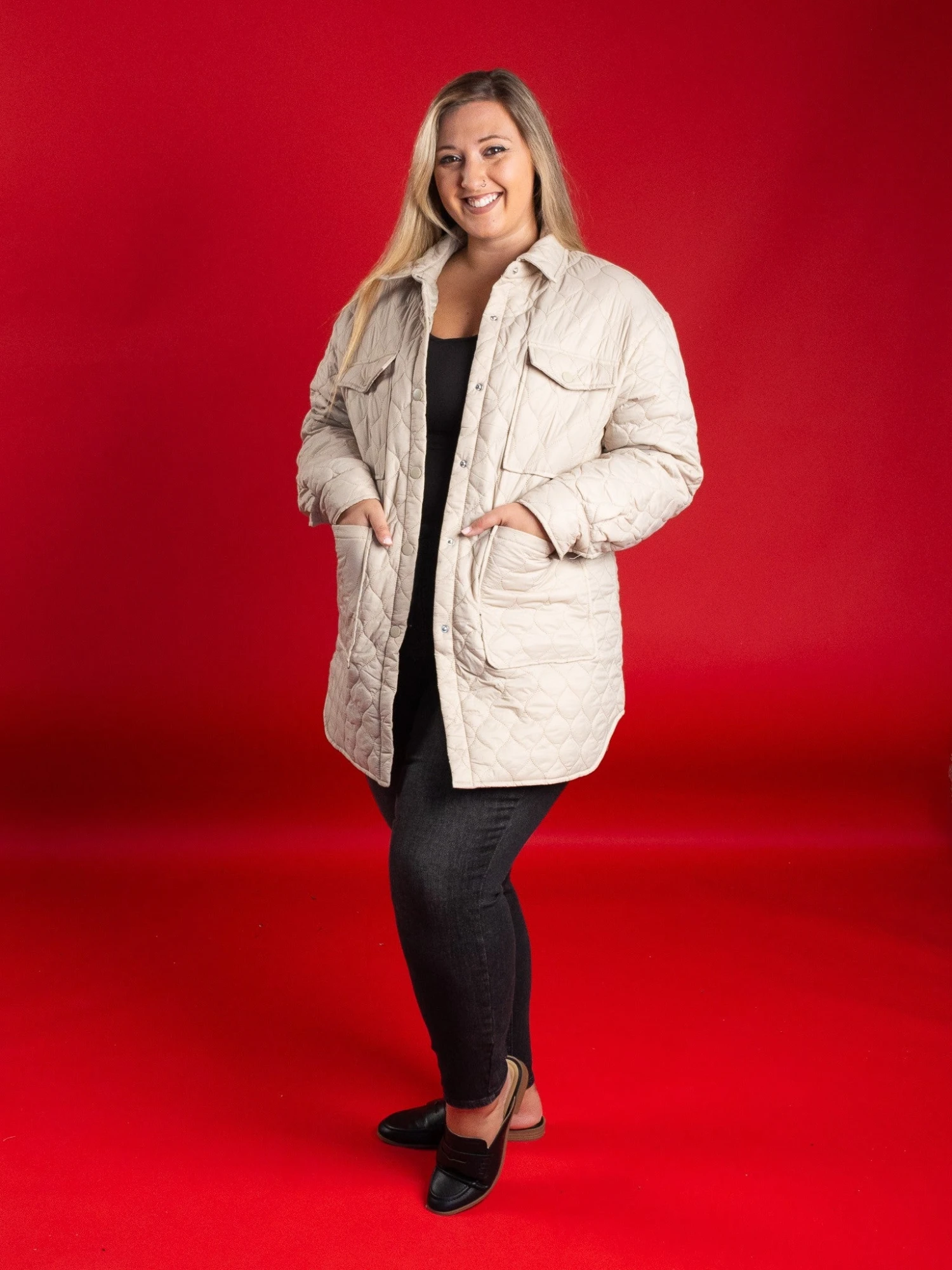 Not only is this quilted coat cozy, it is also so super cute! With four front pockets, it’s not just about style – it’s also about convenience! Get ready to conquer the season with confidence!