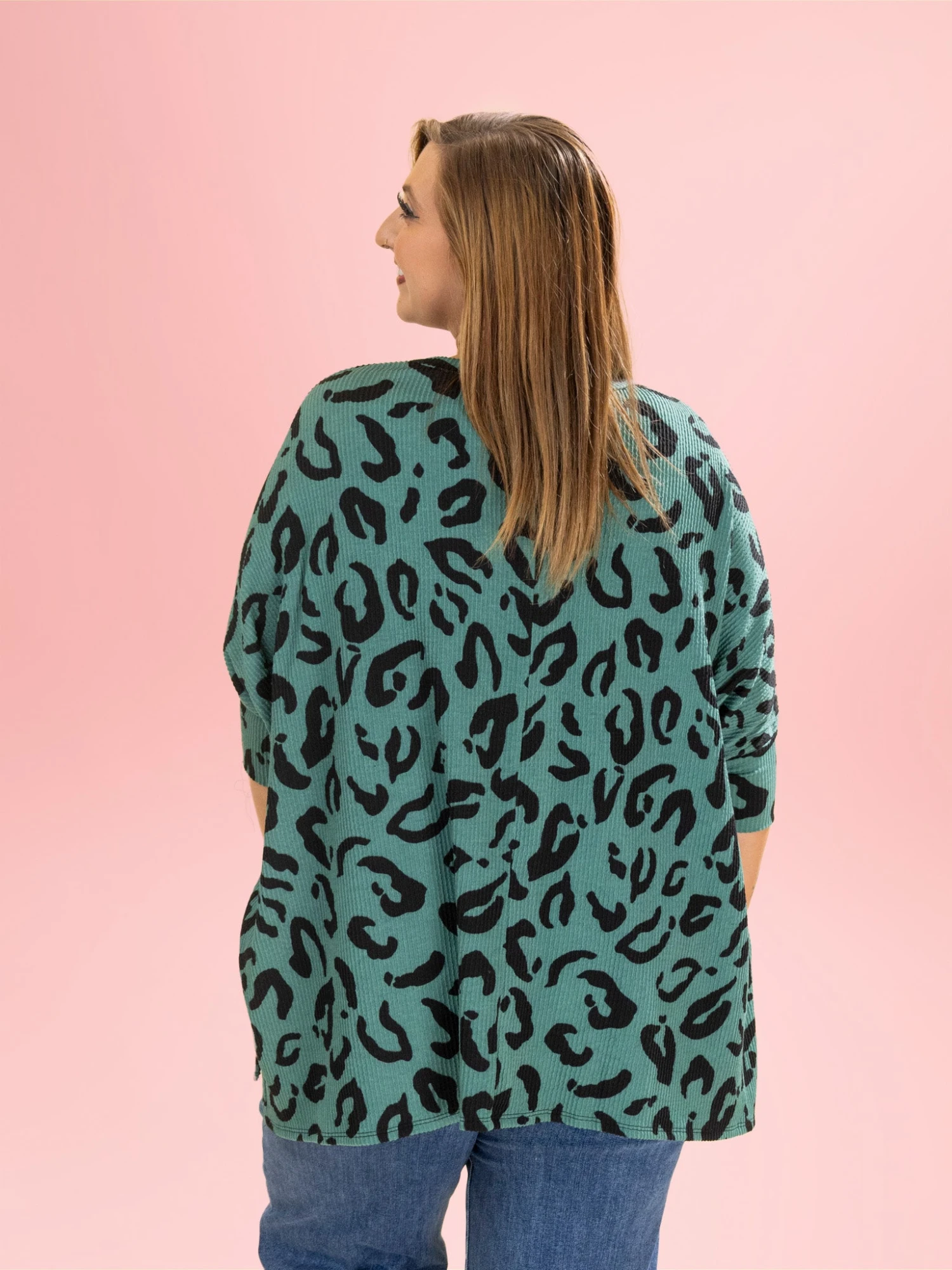 Features: Round Neck, Short Sleeves, Raised Rib, Oversized, Leopard Print
