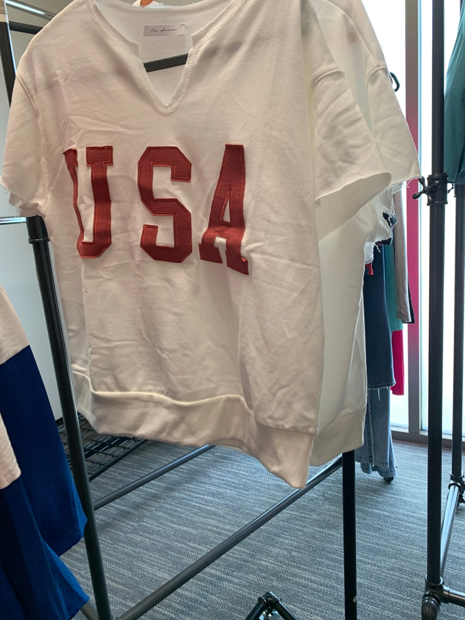 Features: Split Neck, Short Sleeves, Graphic Top