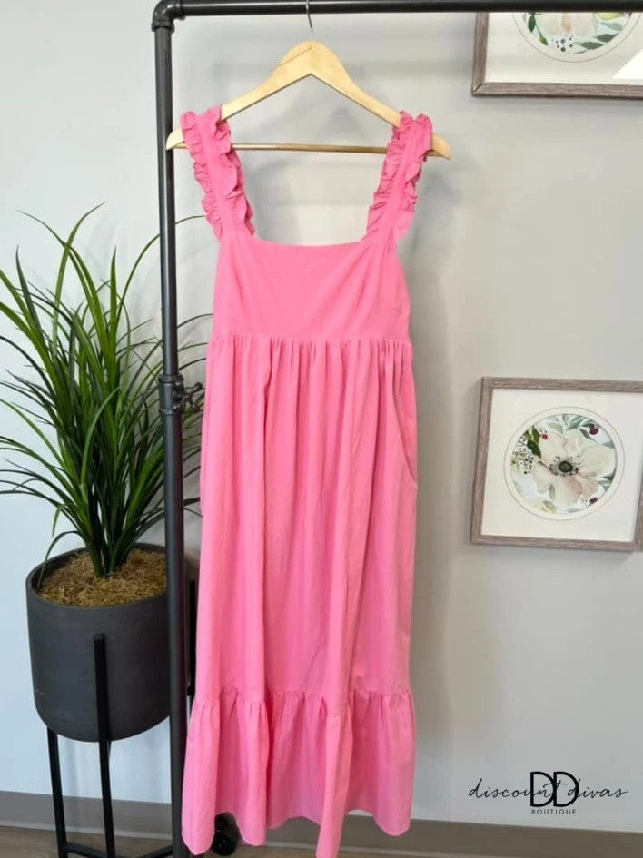 Features: Square Neck, Ruffle Straps, Pockets, Lined