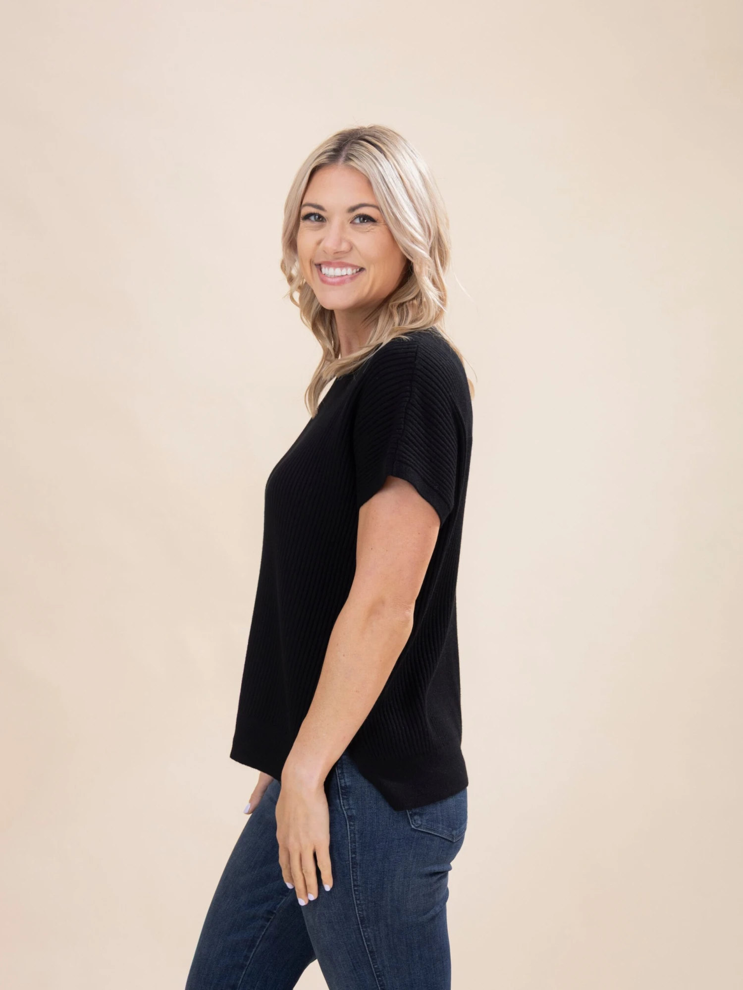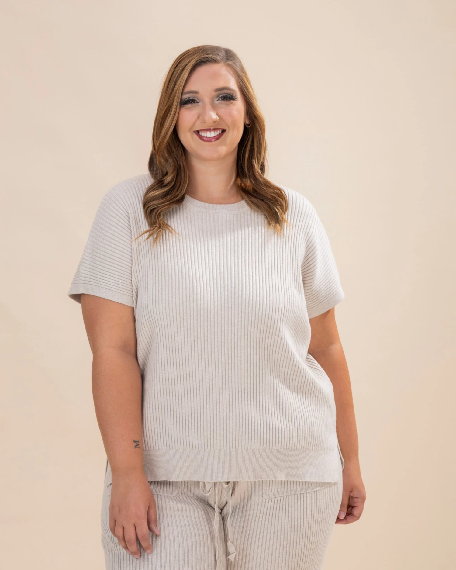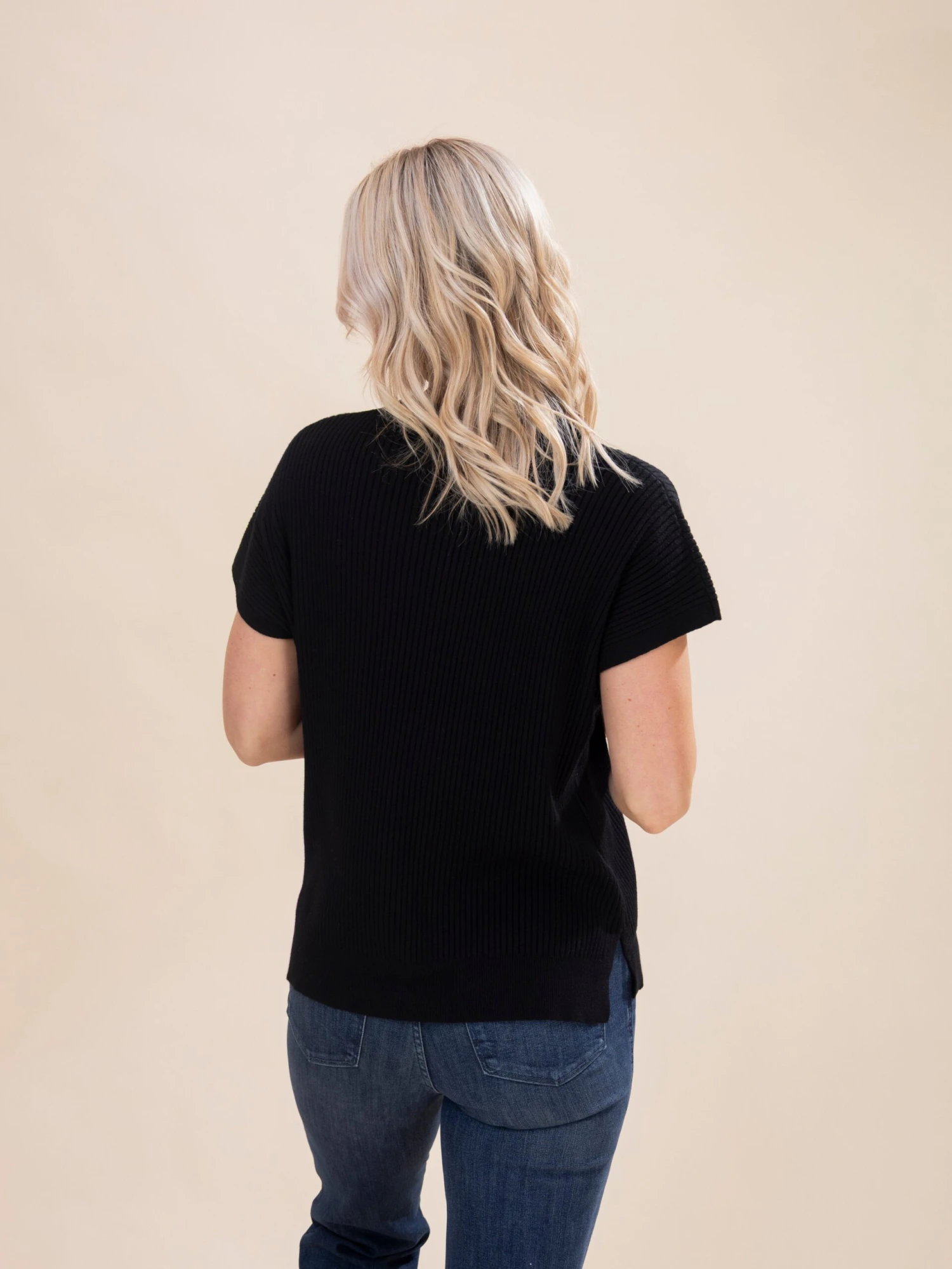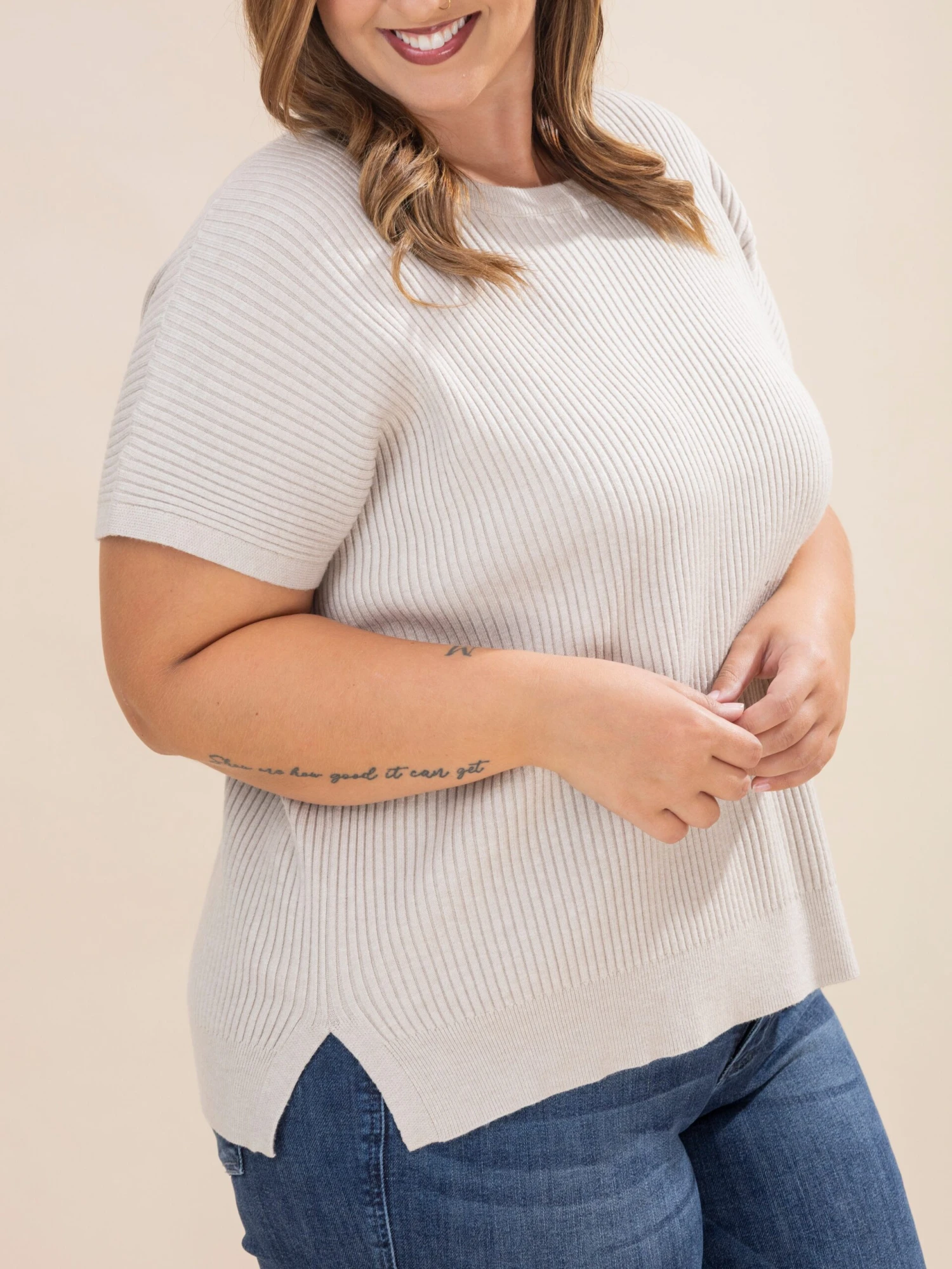 Features: Round Neck, ShortSleeves, Side Slits, Ribbed Sweater