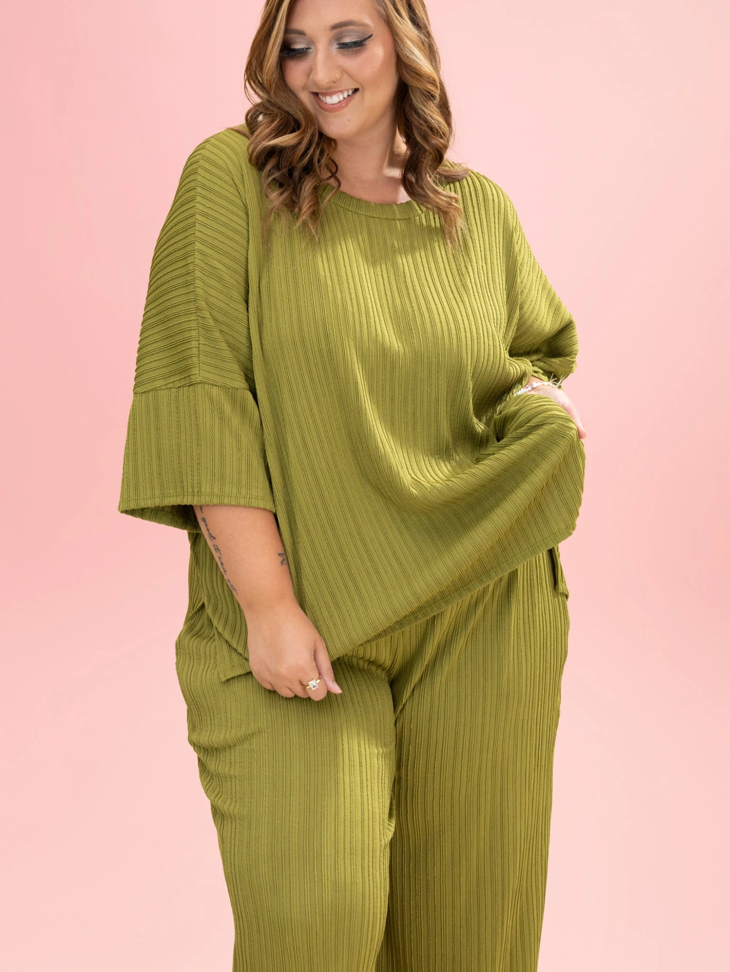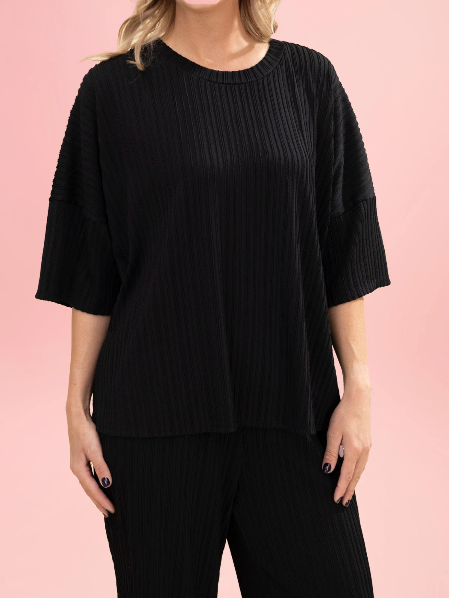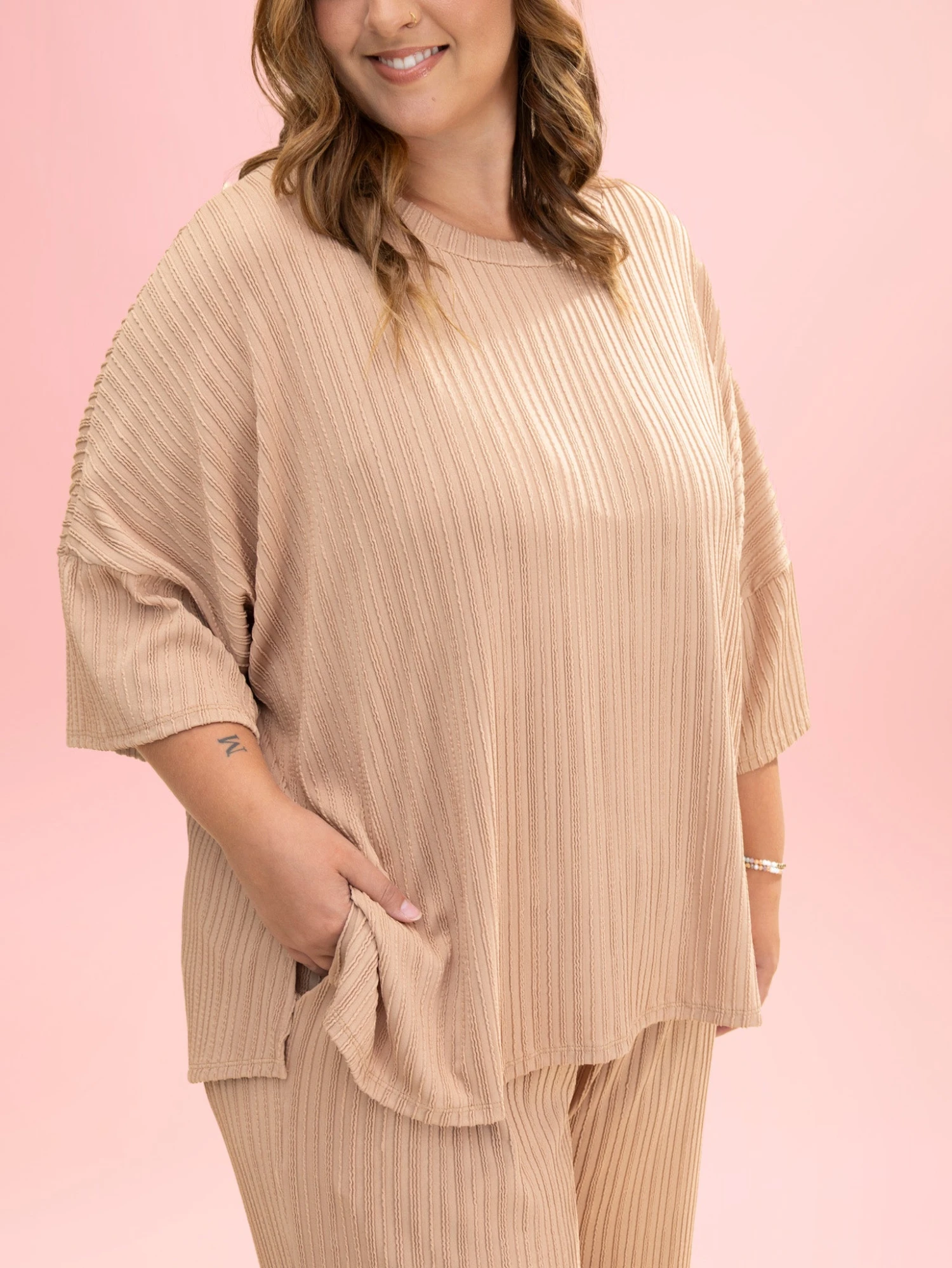 Features: Ribbed, Oversized, Short Sleeve, Round Neck
