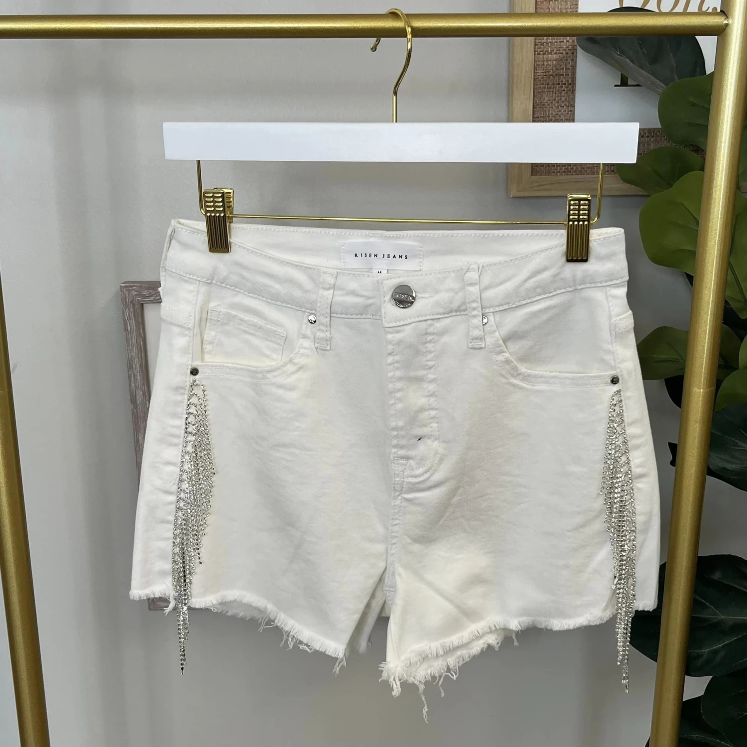 Features: Button Waist, Pockets, Frayed Bottom