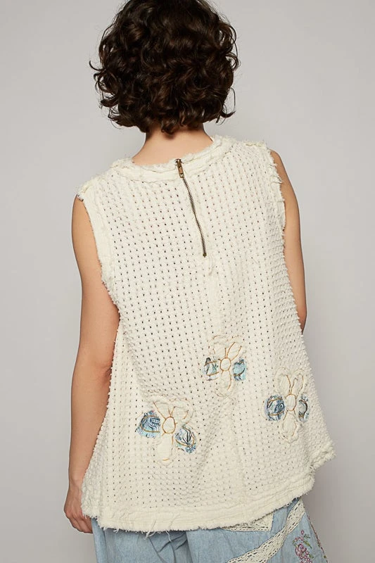 Features: Round Neck, Flower Patch Knit, Sleeveless, Top