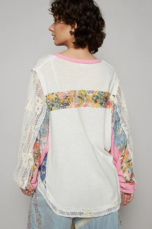 Features: Round Neck, Long Sleeve, Mixed Media, Top