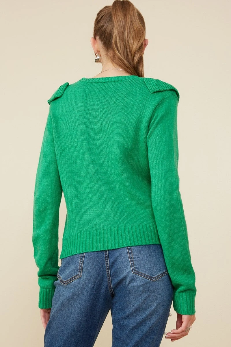Features: Ruffle Detail, Buttoned, Sweater, Cardigan