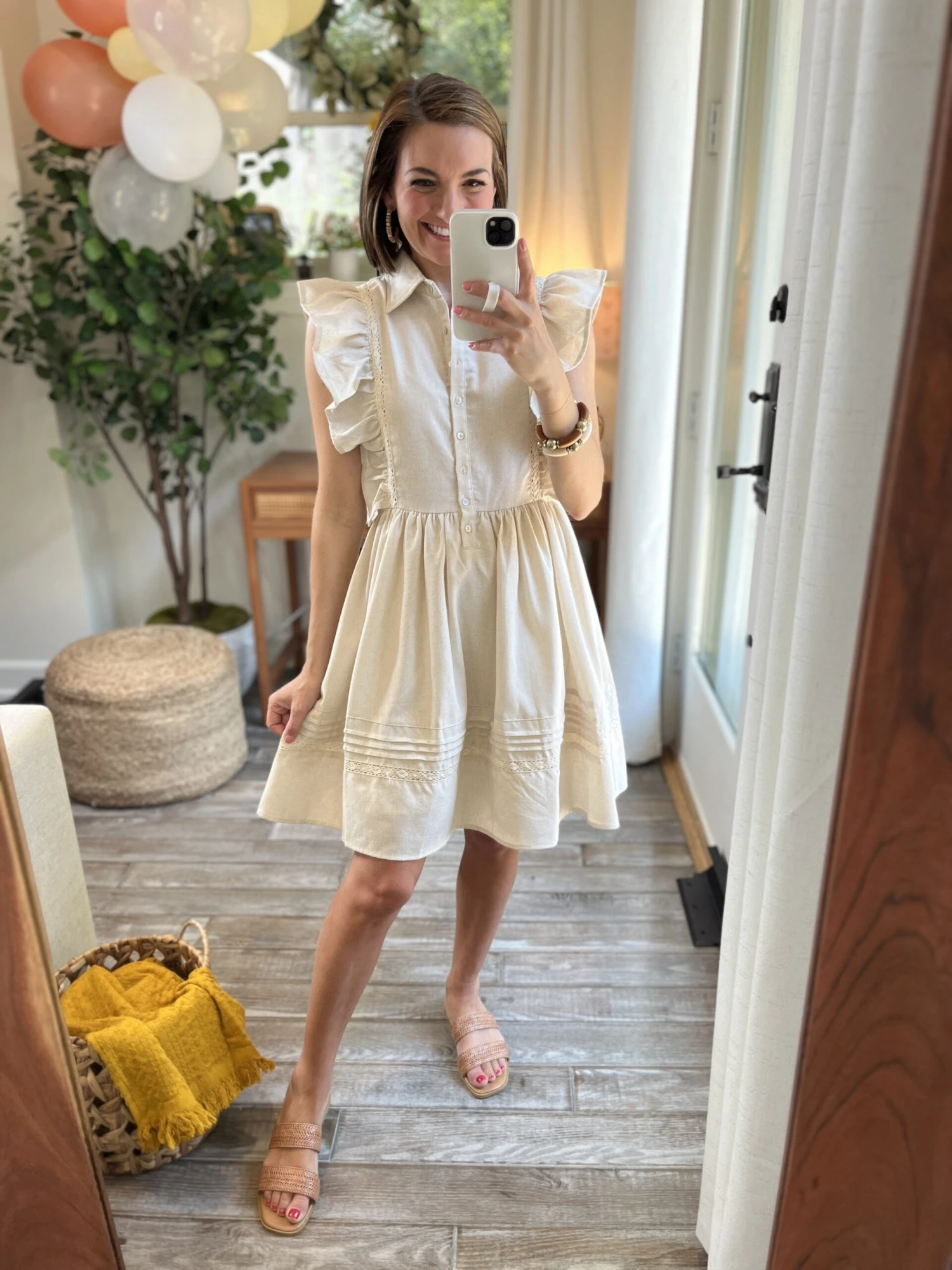 Features: Collar, Ruffle Sleeves, Button Details, Lined