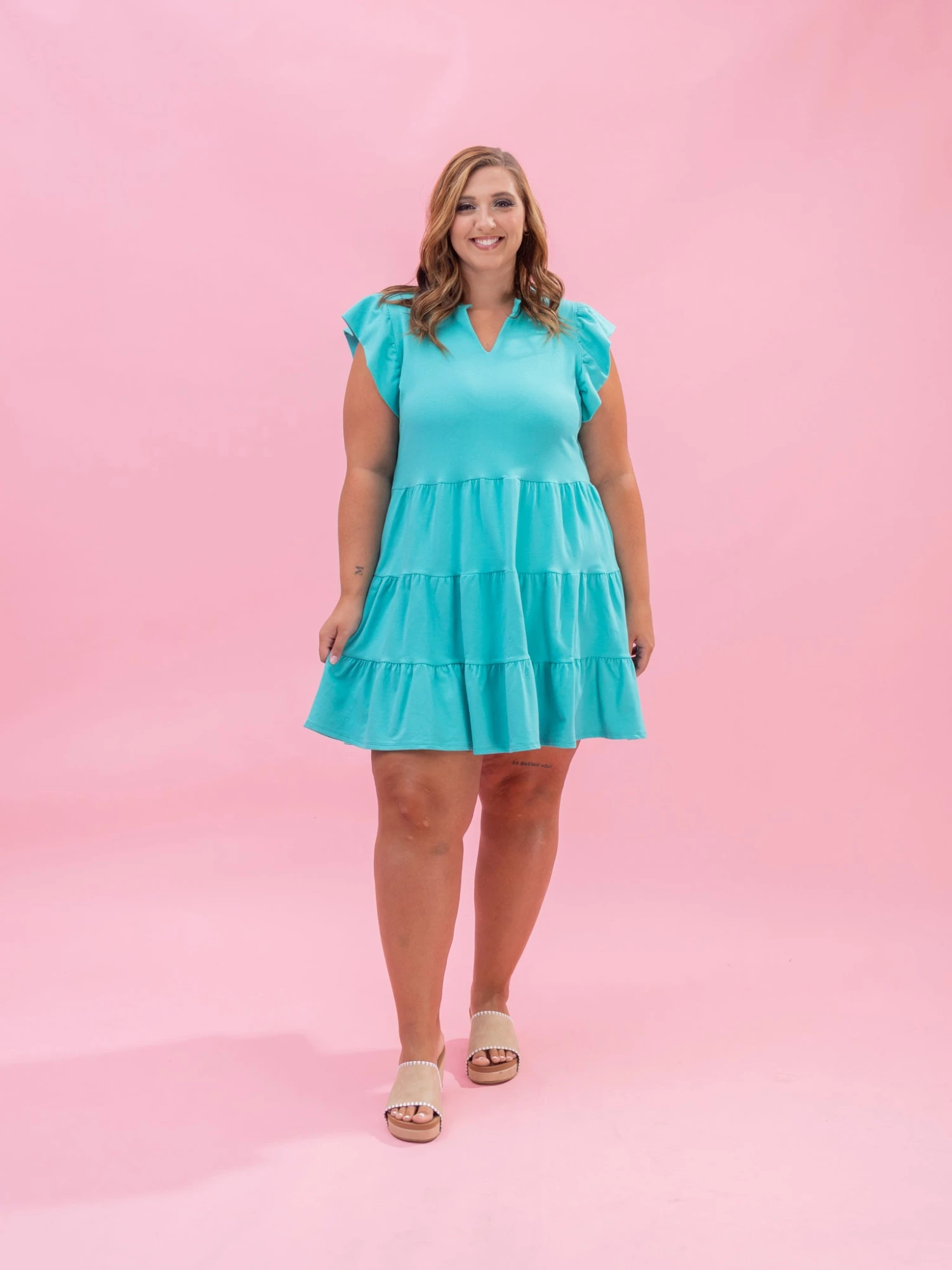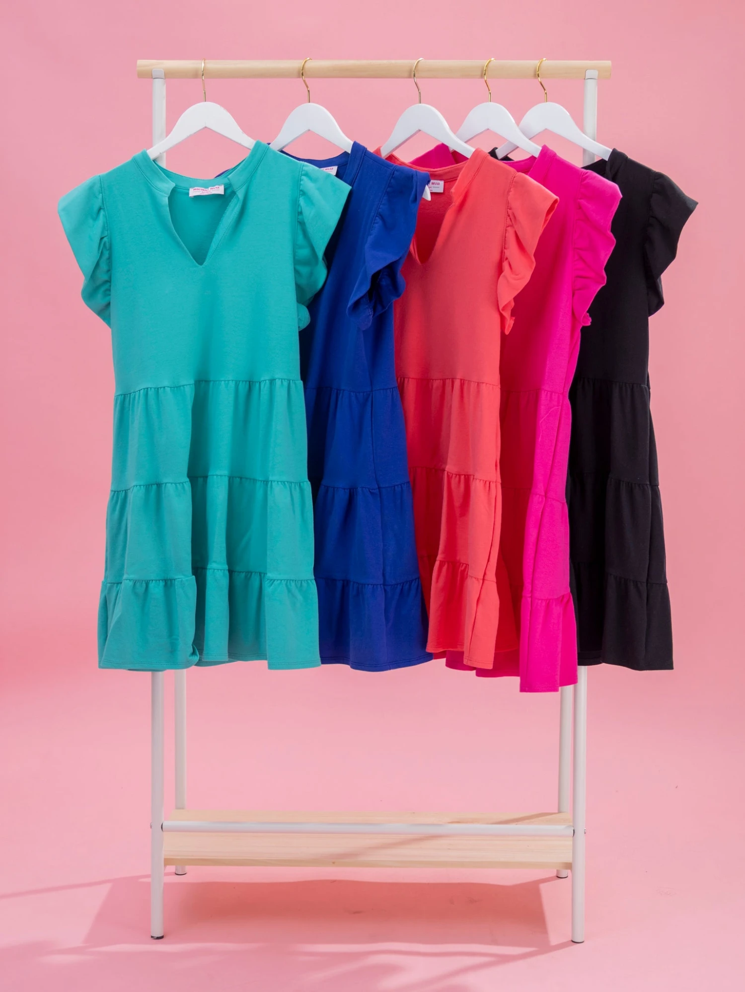 Features: V Neck, Ruffle Sleeve, No Pockets, French Terry, Tiered