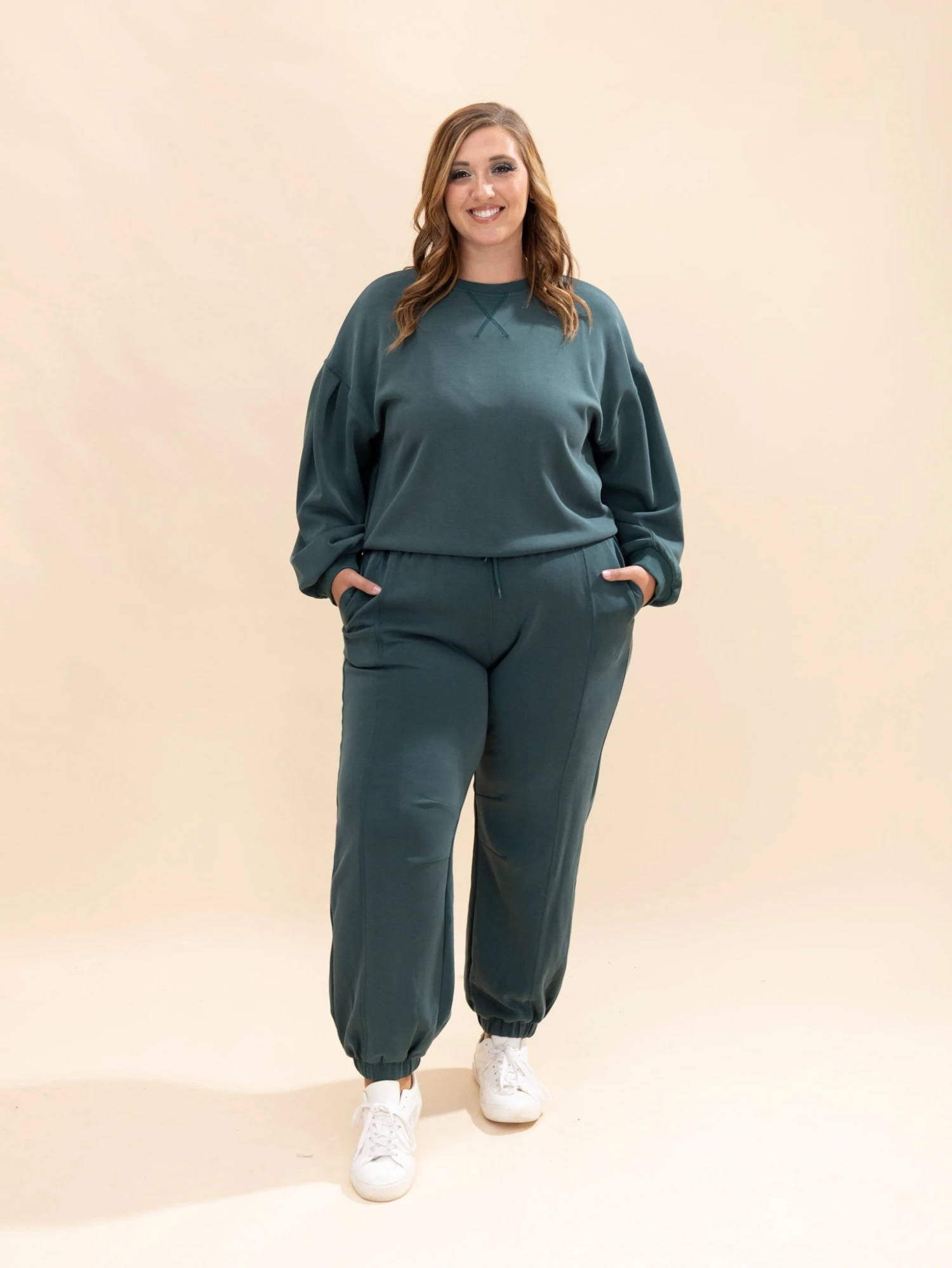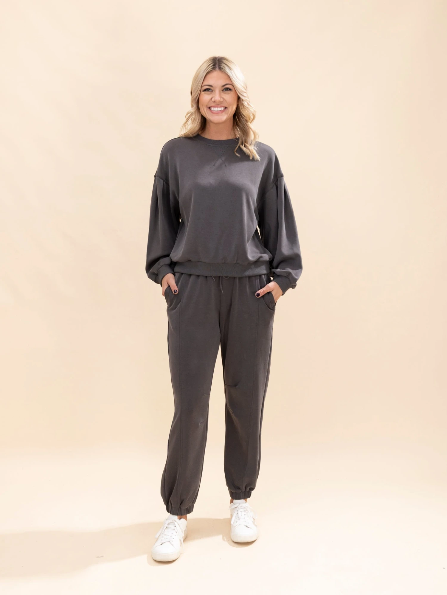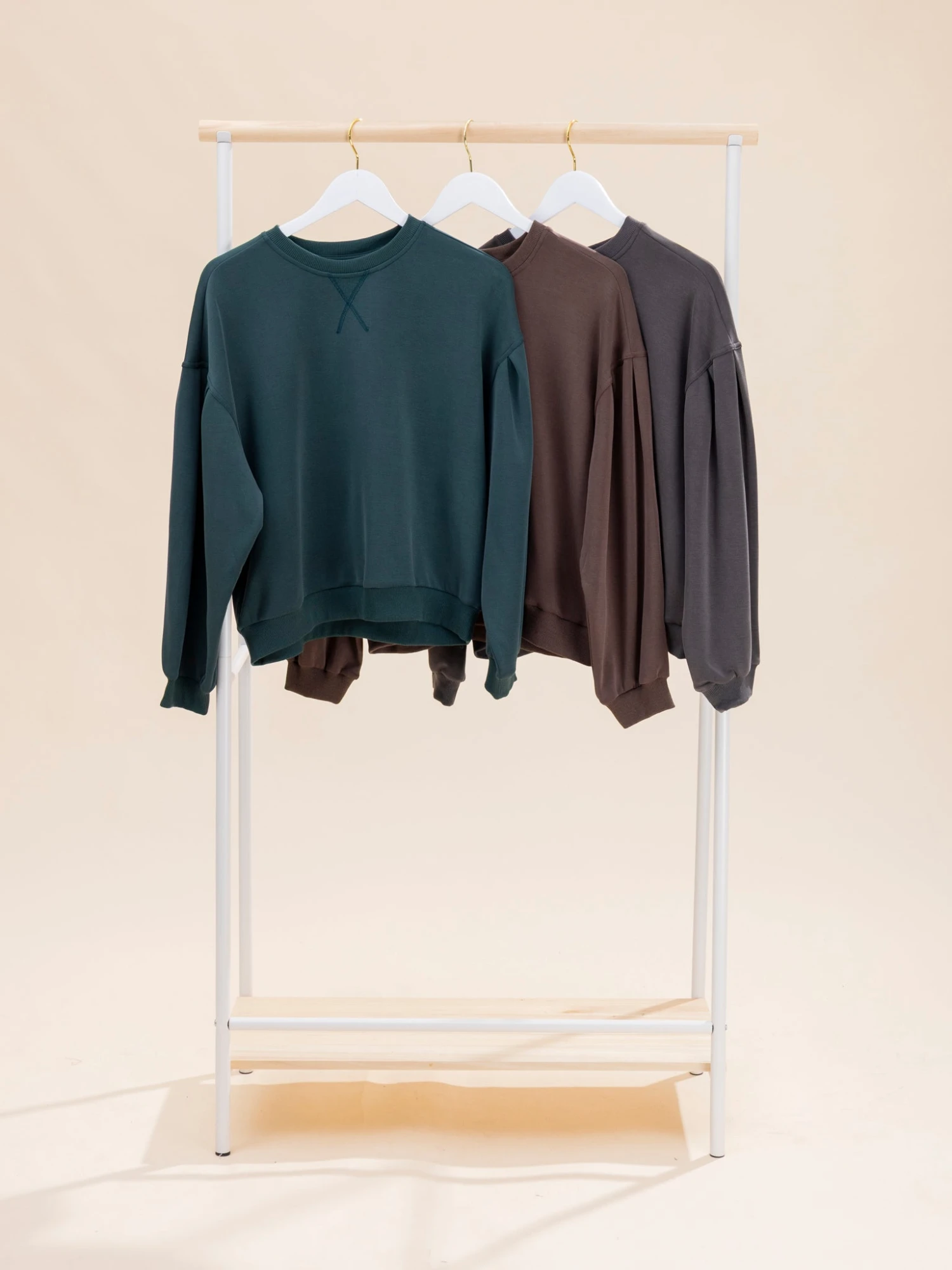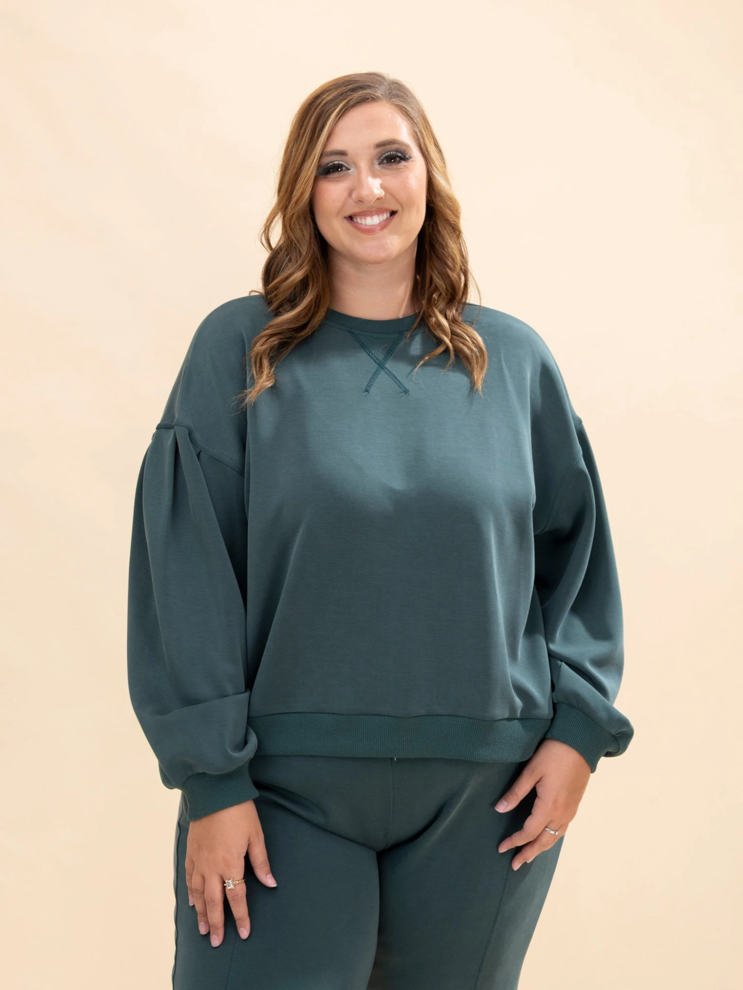 Features: Round Neck, Bubble Long Sleeve, Scuba Loose Fit Top
