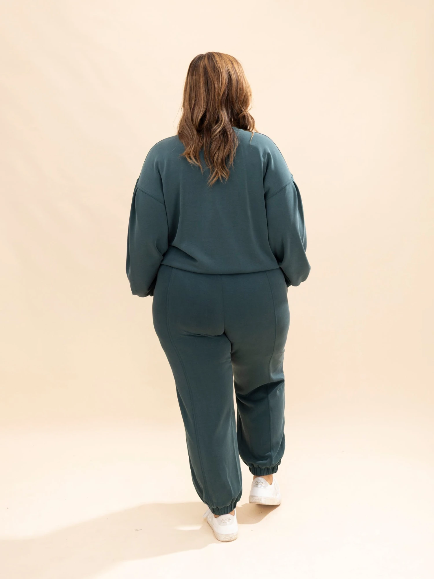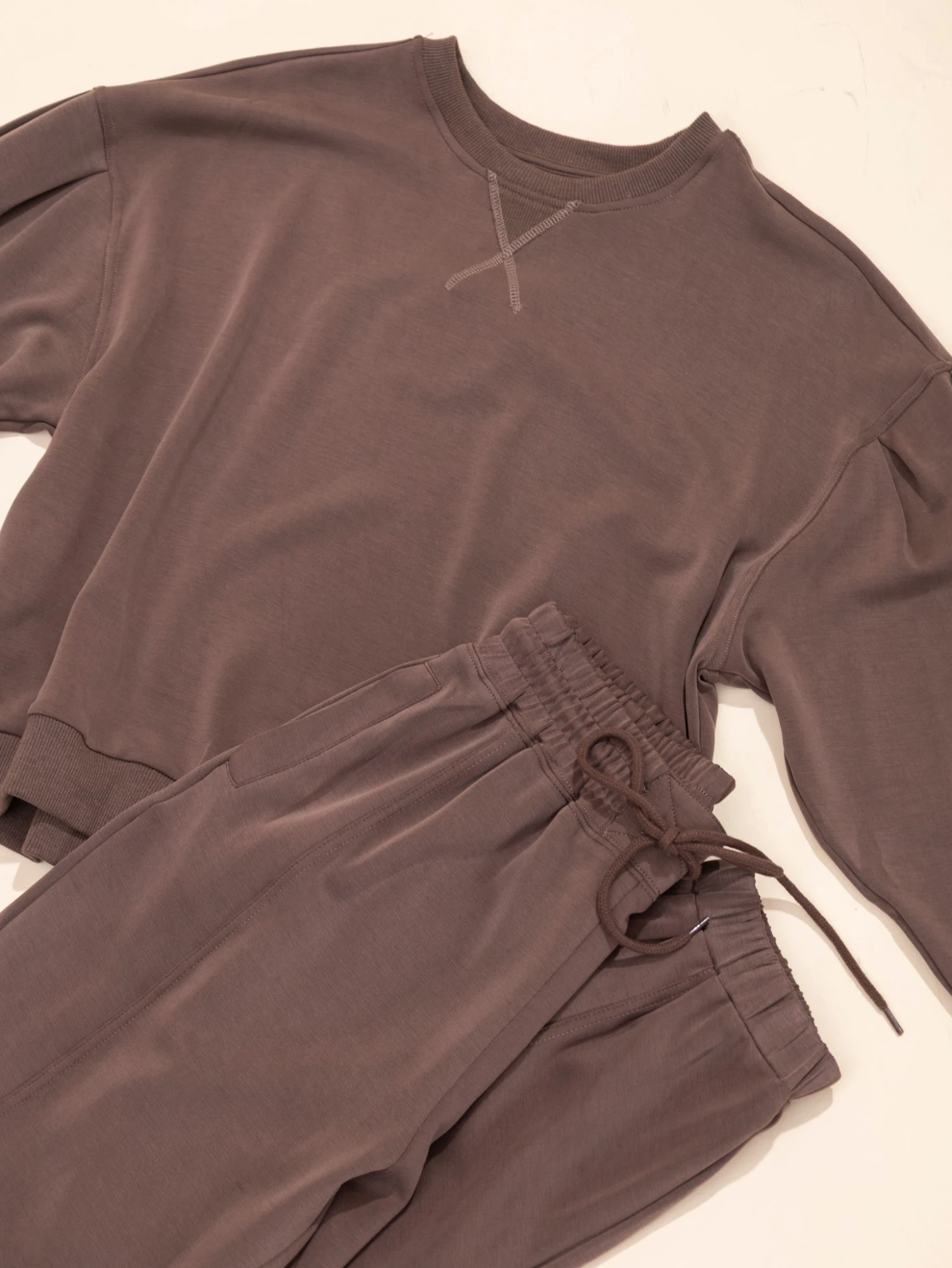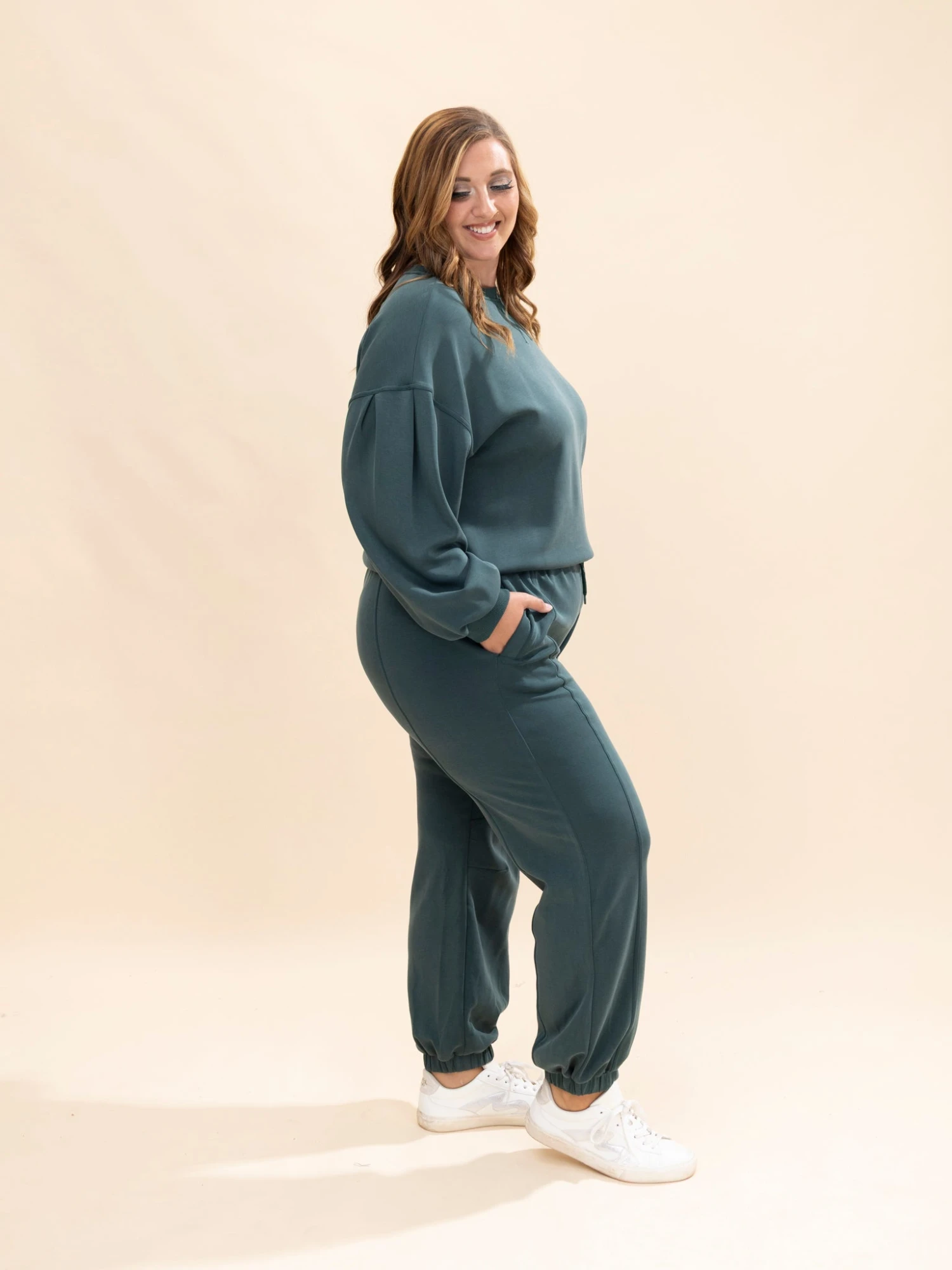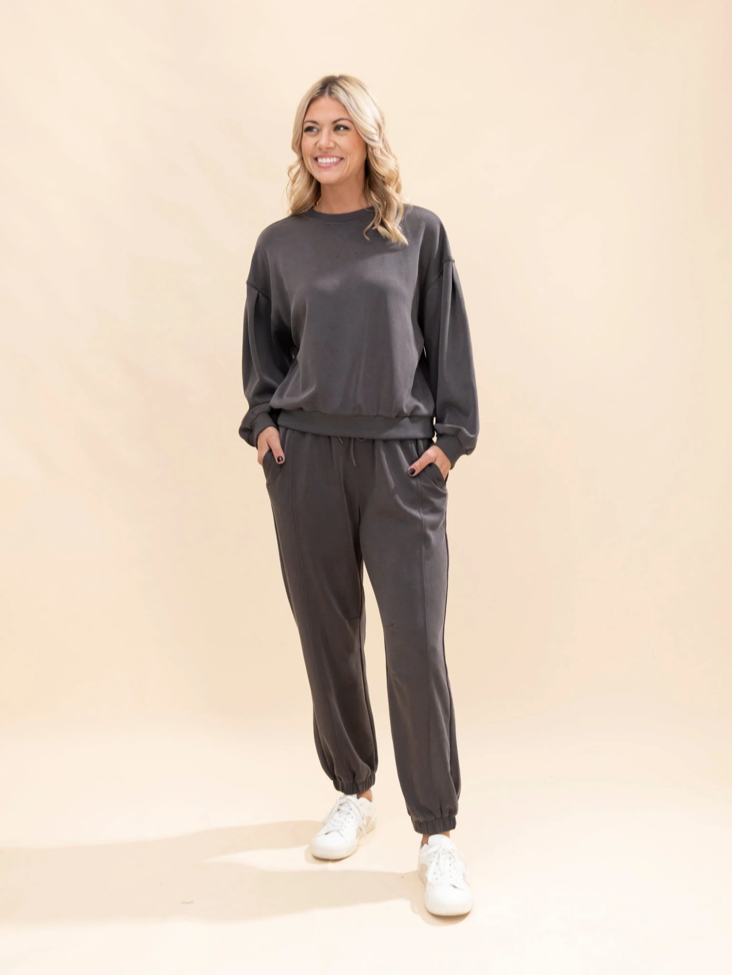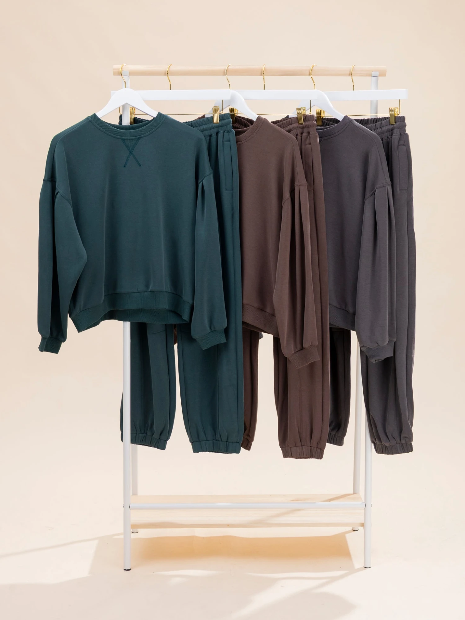 Features: Round Neck, Bubble Long Sleeve, Scuba Loose Fit Top