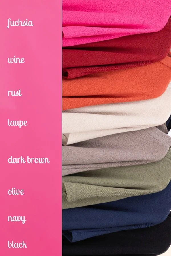 Materials: 62% Polyester, 33% Rayon, 5% Spandex