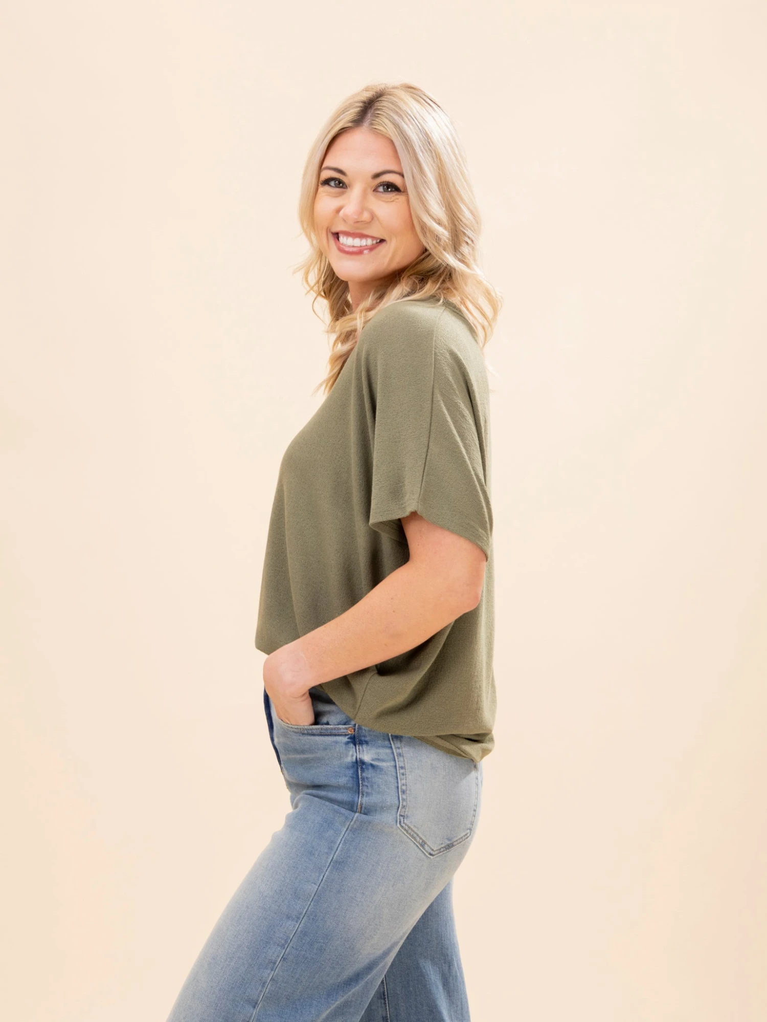 Dreamy Knit is BACK in a new style!!! Still Small-3XL and the fabric you know and love!! Light weight, bouncy, stretchy, comfy and now in an easy to wear v-neck short sleeve style!! Perfect to throw on with jeans!! Plus, it ships fast and FREE!