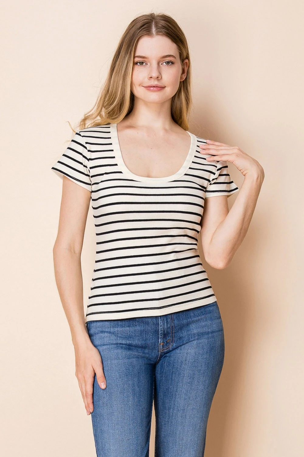 Features: Scoop Neck, Short Sleeves, Striped