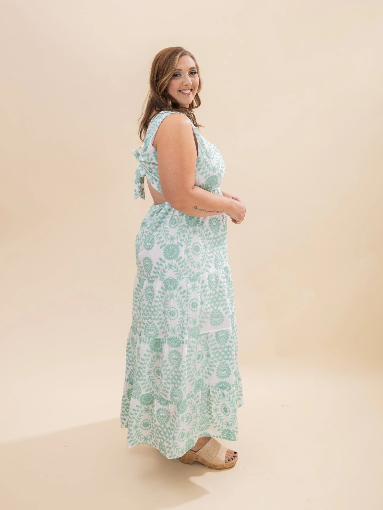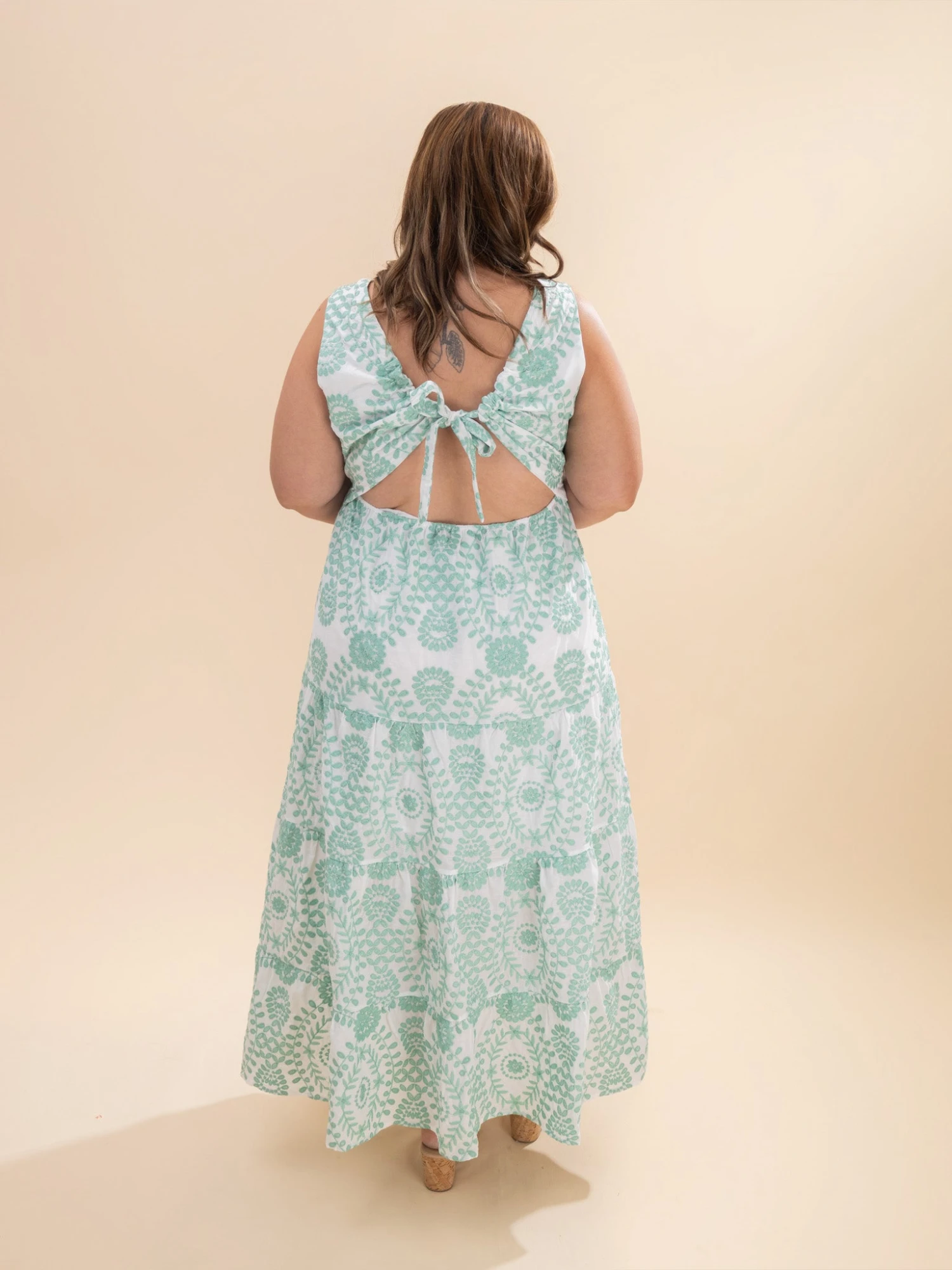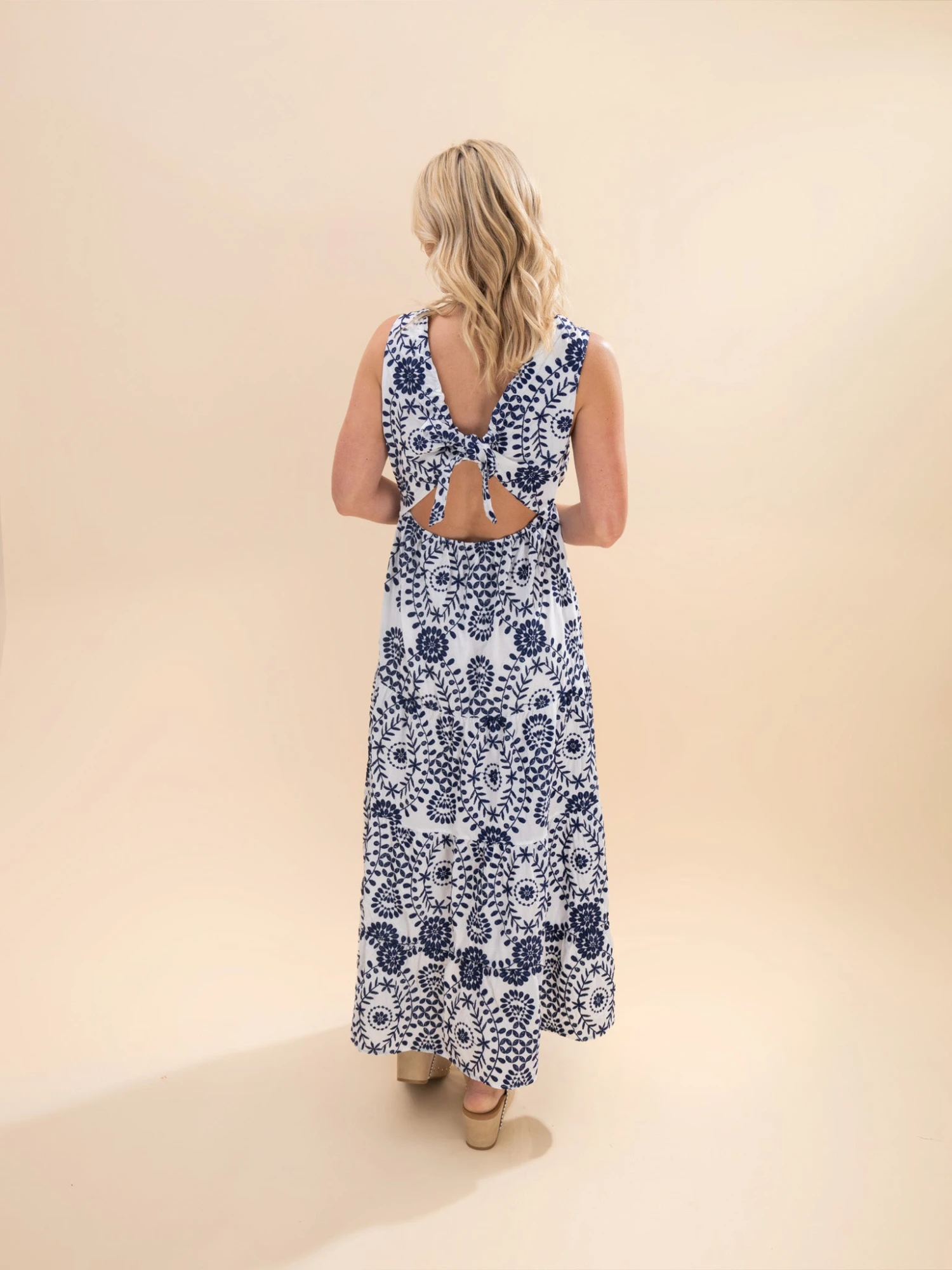 Features: Square Neck, Tie Open Back, Sleeveless, No Pockets, Floral Embroidered Tired Lined Maxi