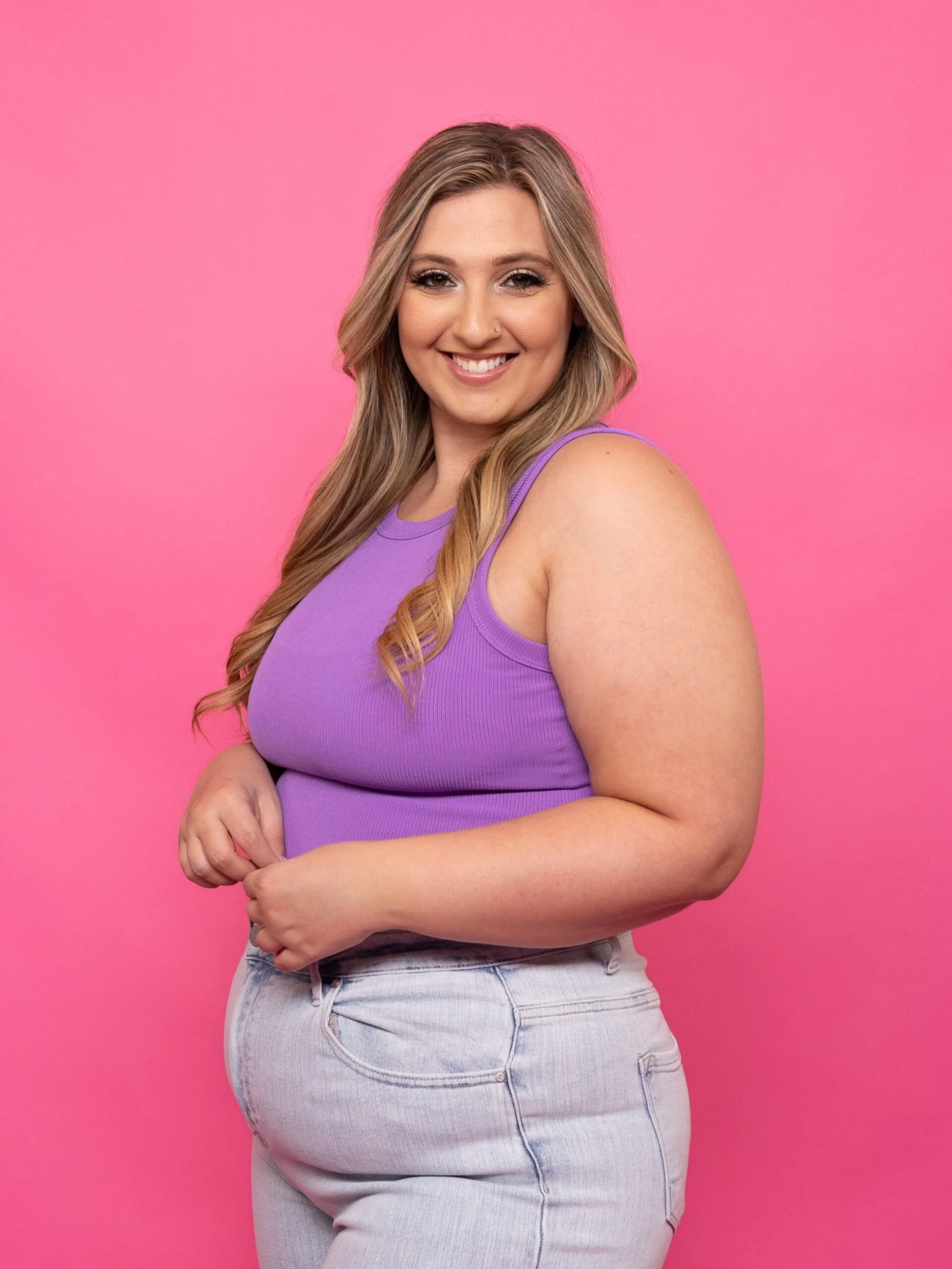 Erin is 5’9, 36C bra, typically wears size L/XL in tops and 14/16 in denim. Wearing size L
