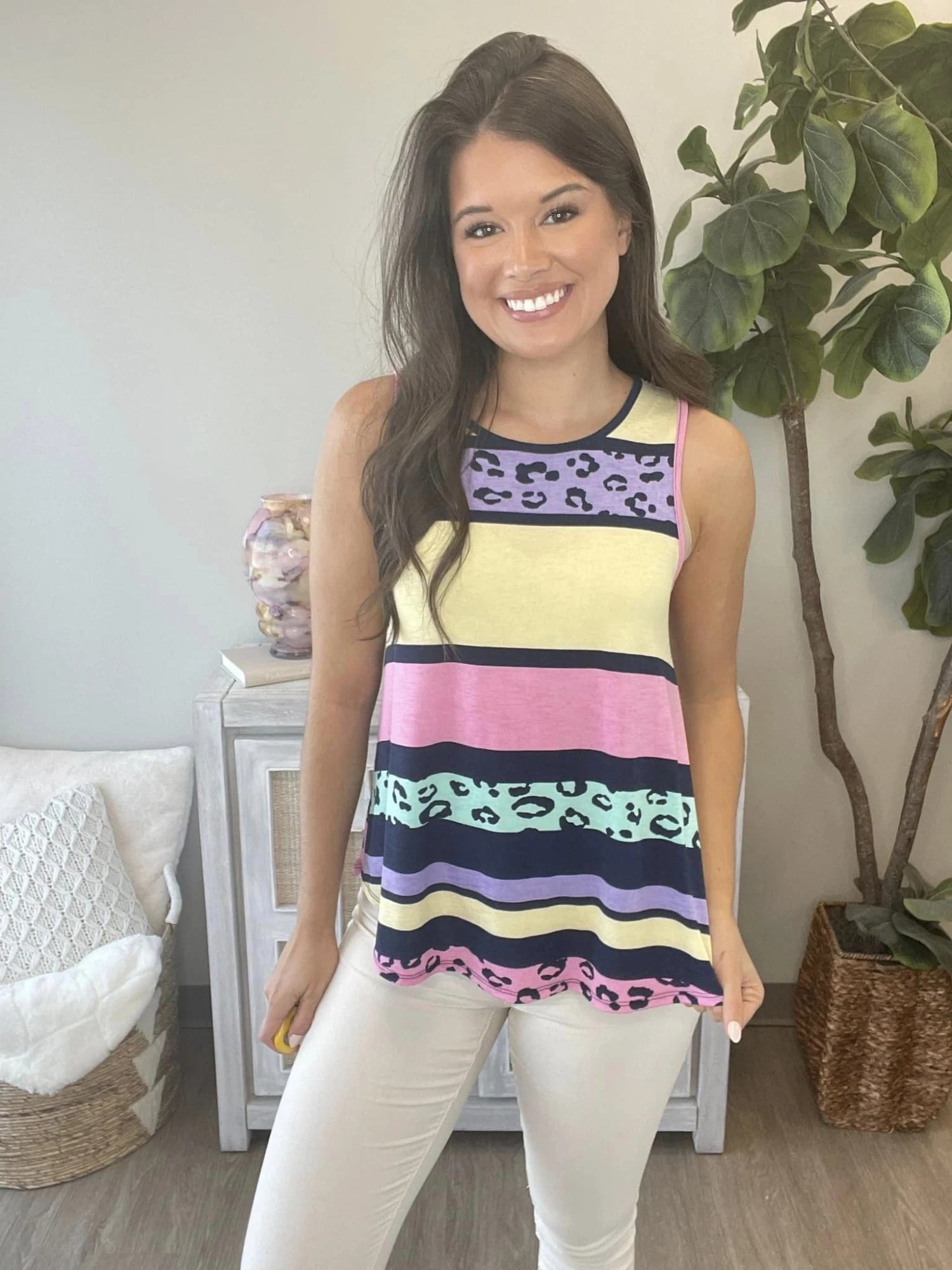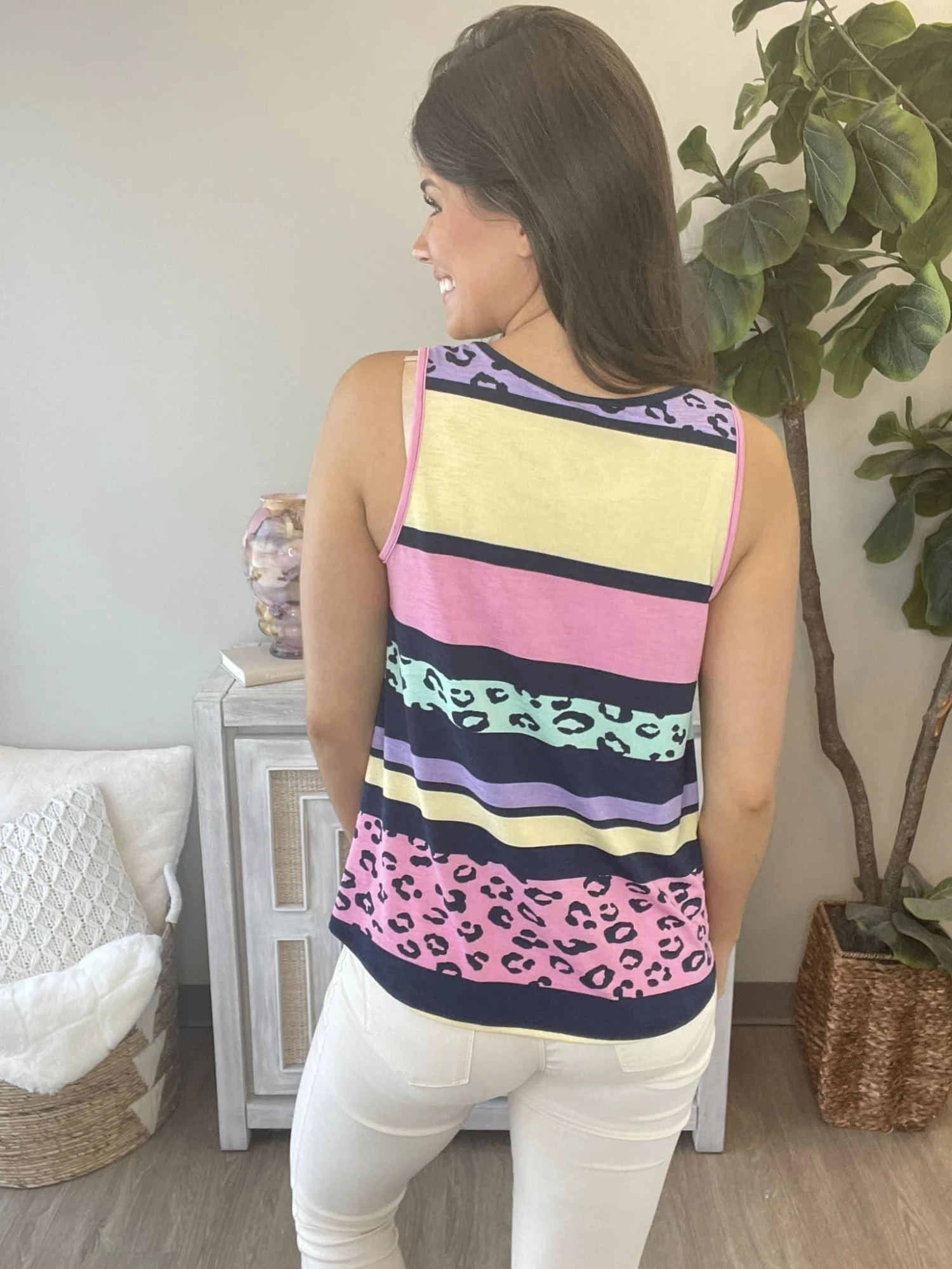 The “Slow Wave Top” is just what you need! We are obsessed with the fun color block look with the leopard print! You won’t regret snagging this for summer! Don’t miss out!