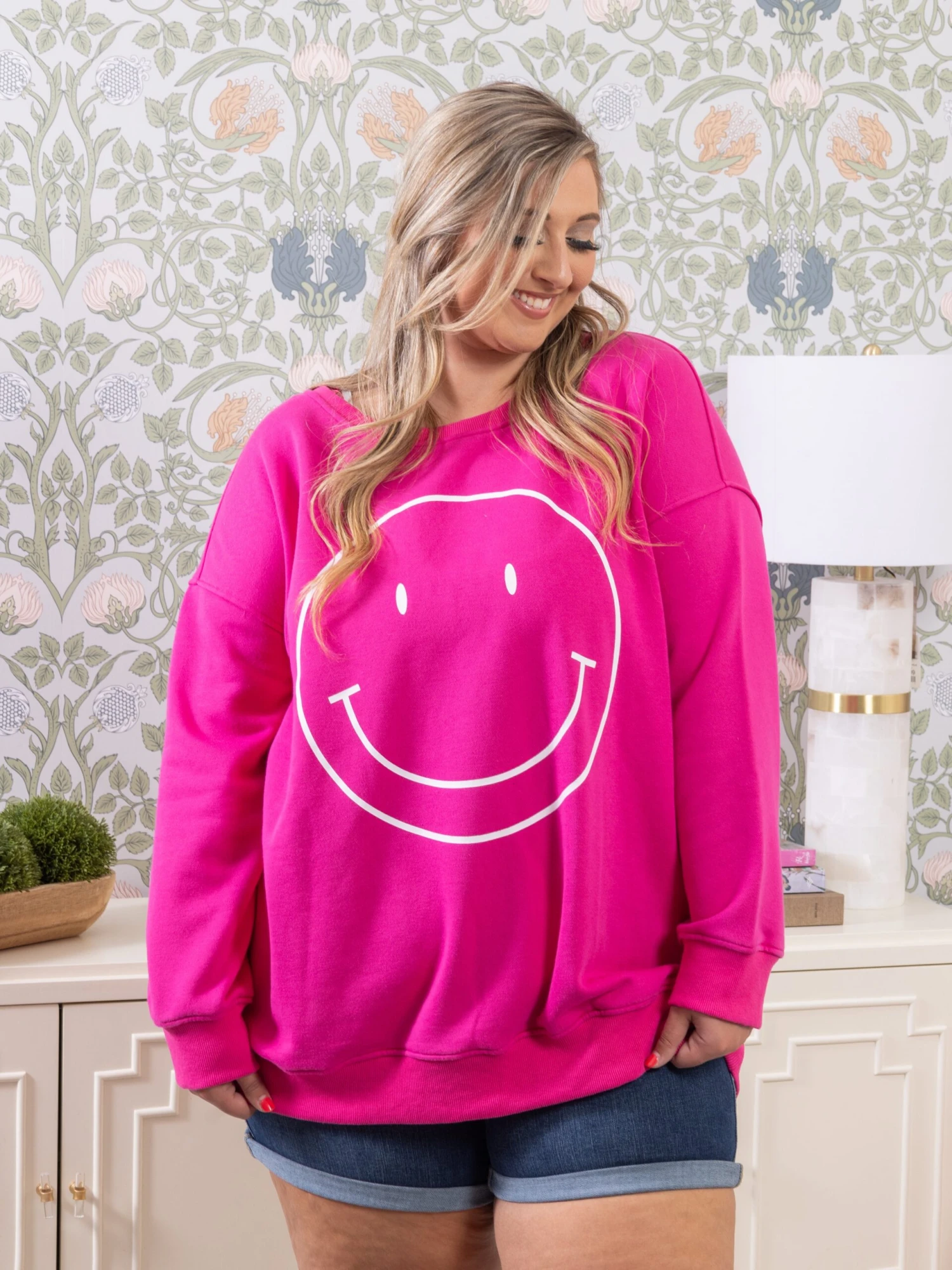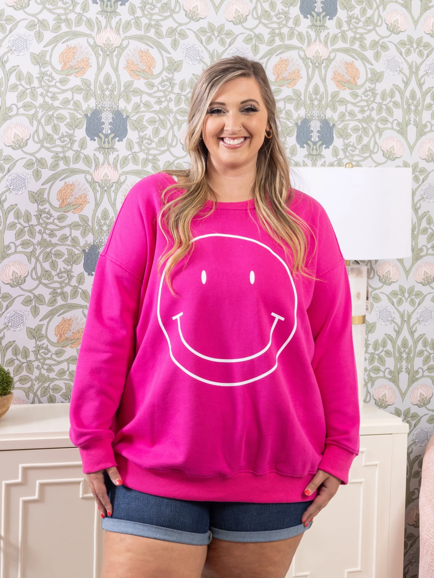 Features: Smiley Face ,Loose Fit, Brushed ,Sweatshirt
