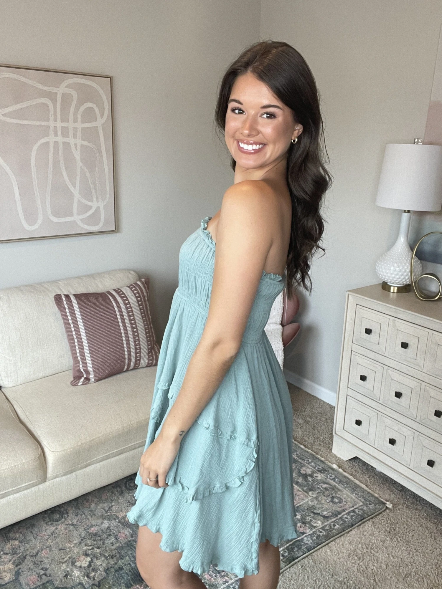 Features: Smocked, Mini Dress, Strapless
