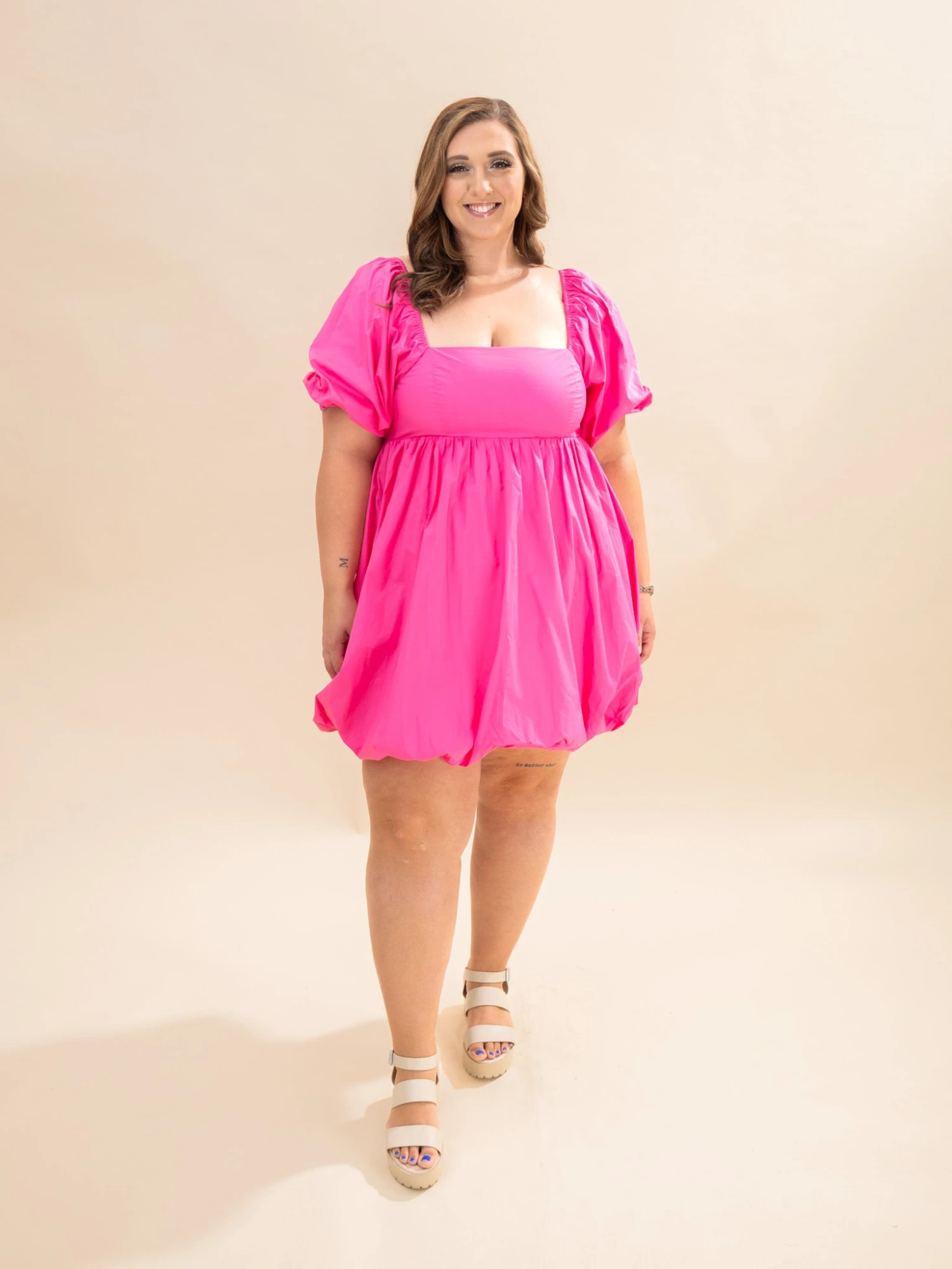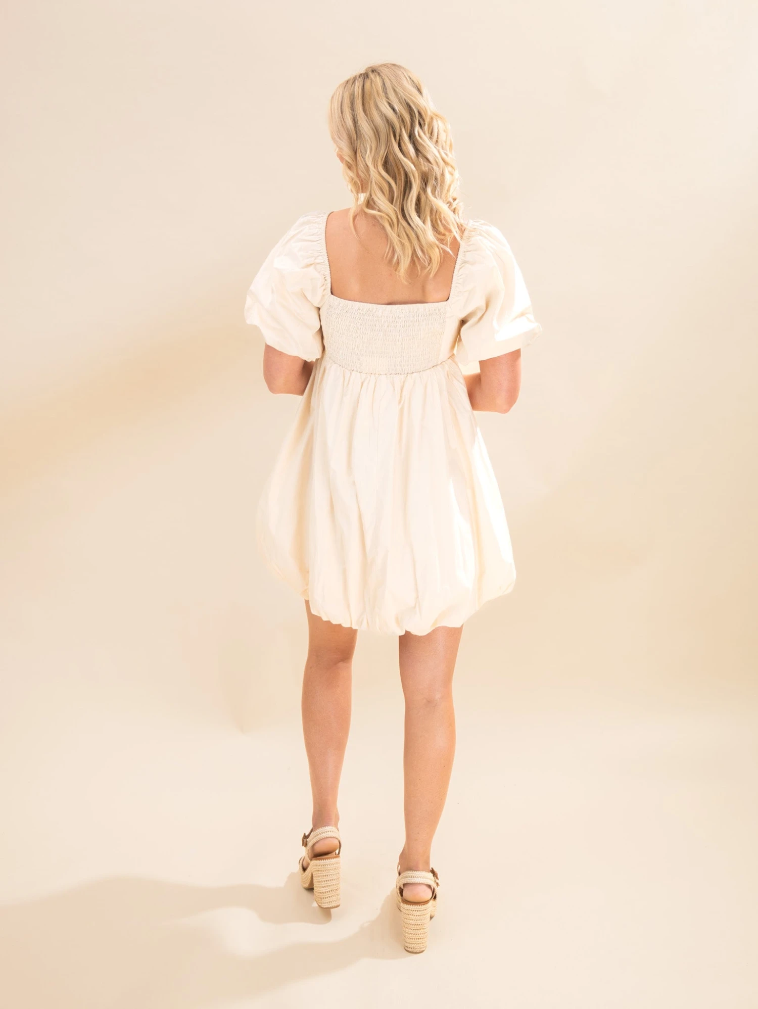 Features: Square Neck, Smocked Back, Bubble Sleeves, Bubble Skirt, Lined Babydoll Dress