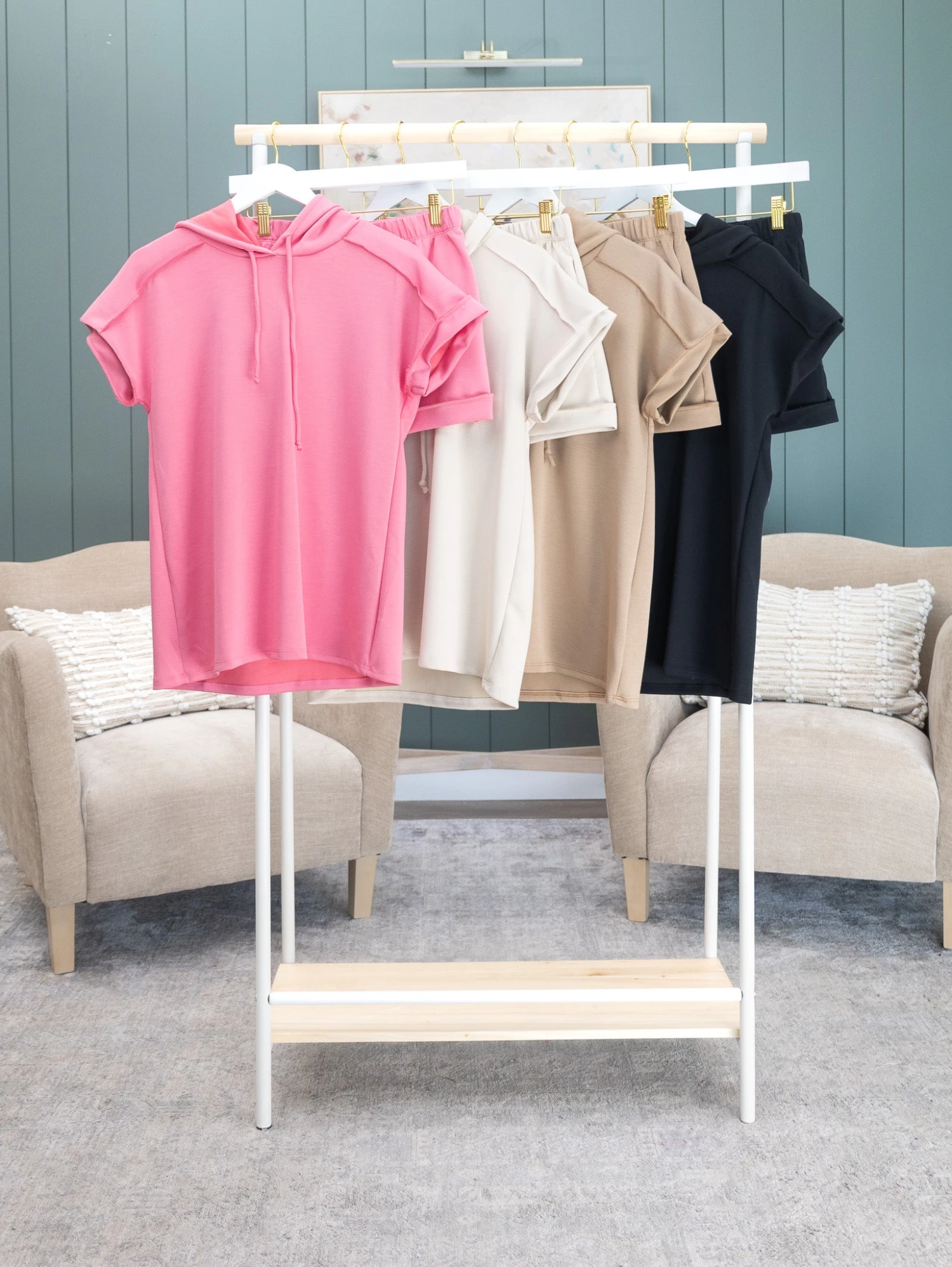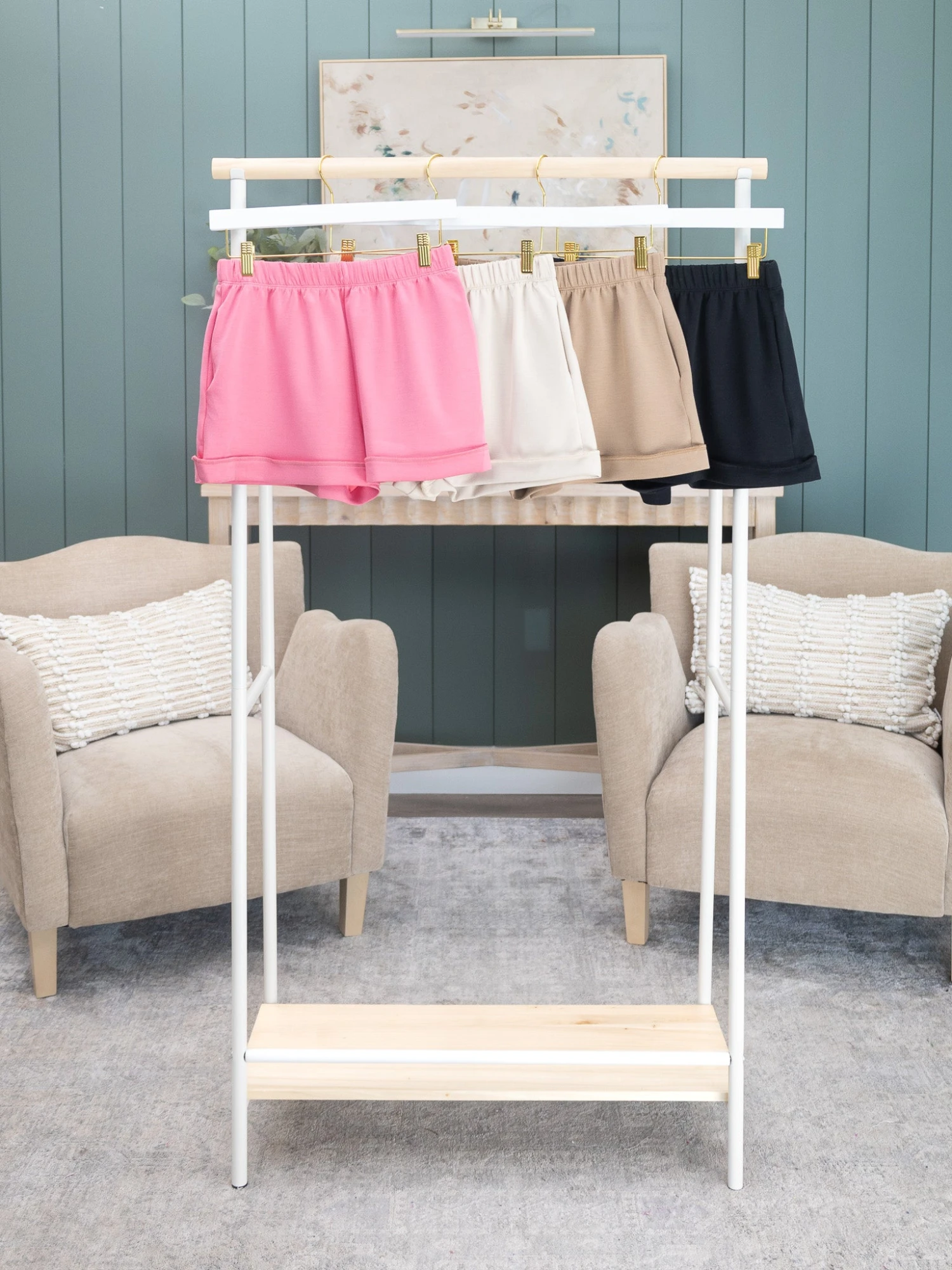 Features: Elastic Waist, Pockets, Cuffed Hem, Solid Modal Scuba Shorts