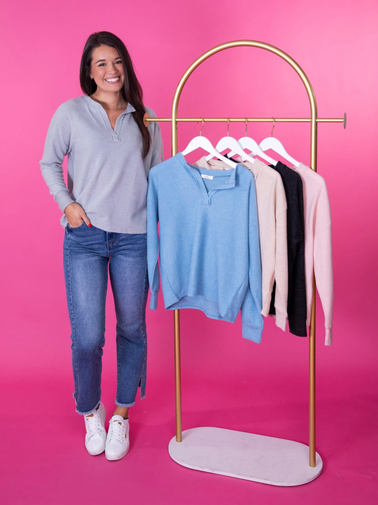 So luxuriously soft, this cute top is a wardrobe essential! Pair it effortlessly with your favorite bottoms to create a comfy yet chic look! Don’t let this must-have slip away!