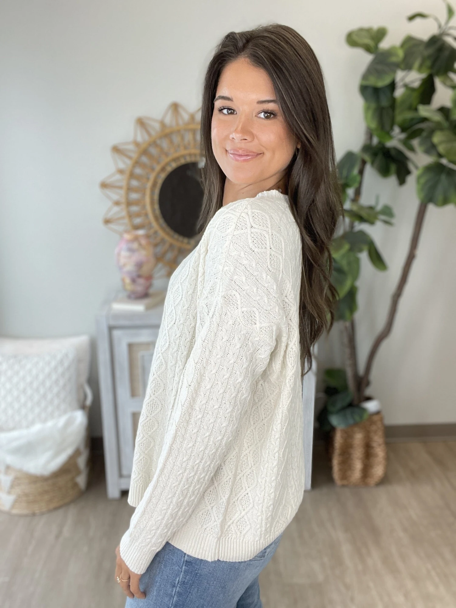 These adorable cable knit sweaters are the perfect staple for all my neutral girlies! With three great colors how will you choose? Get your favorites before they’re gone!