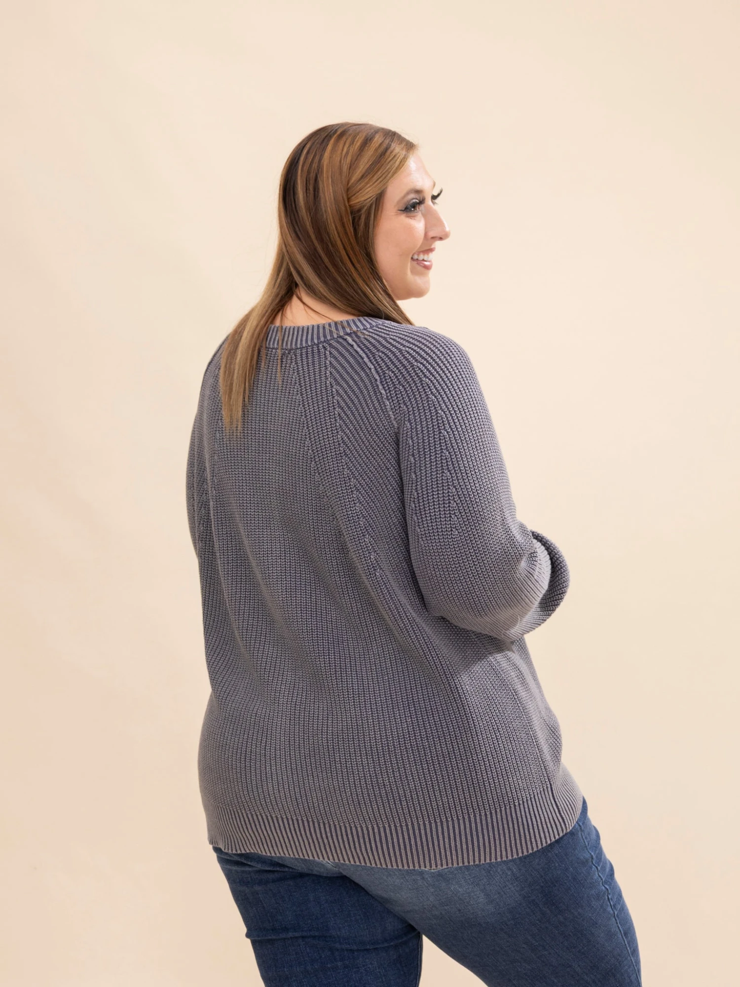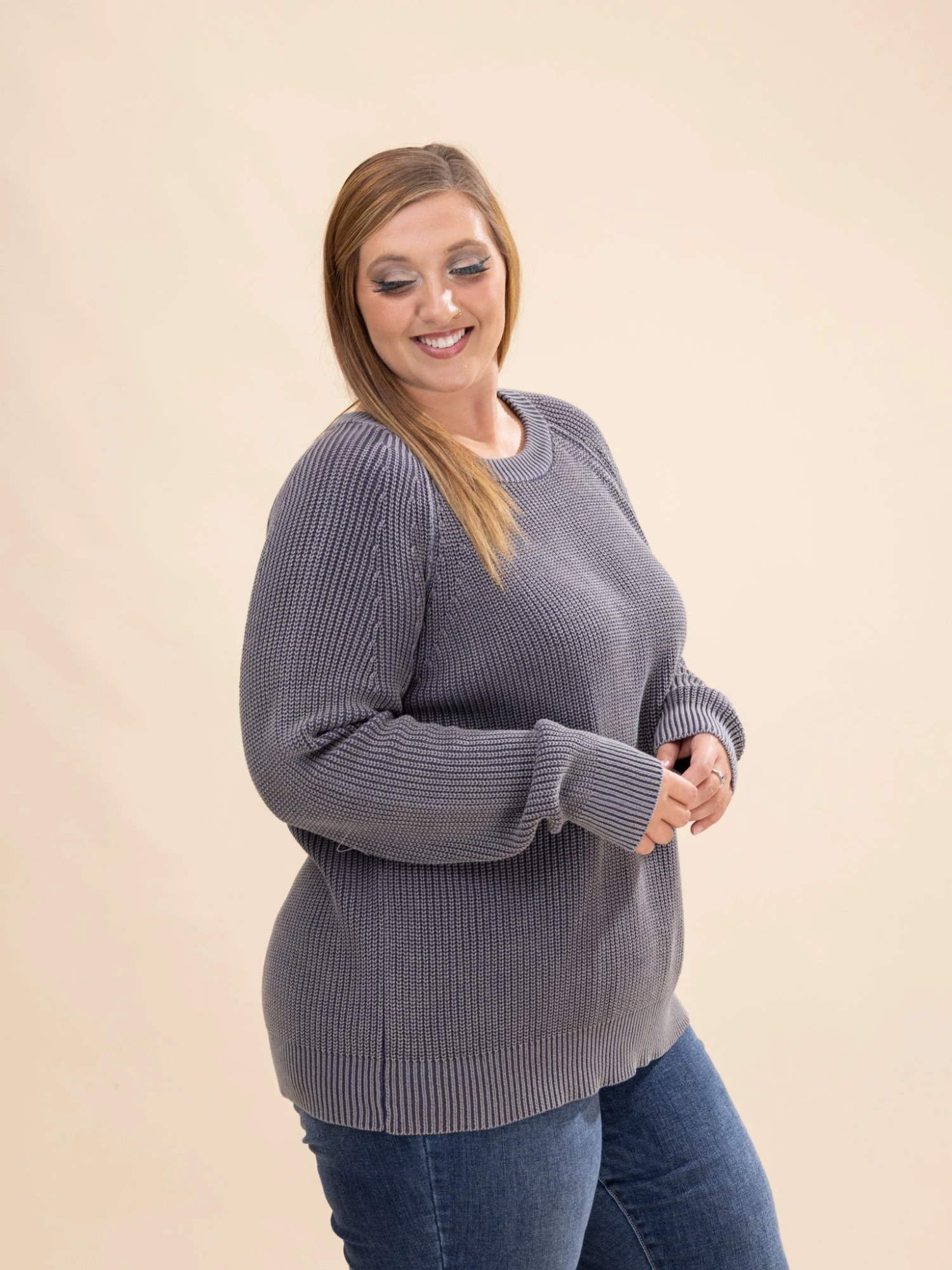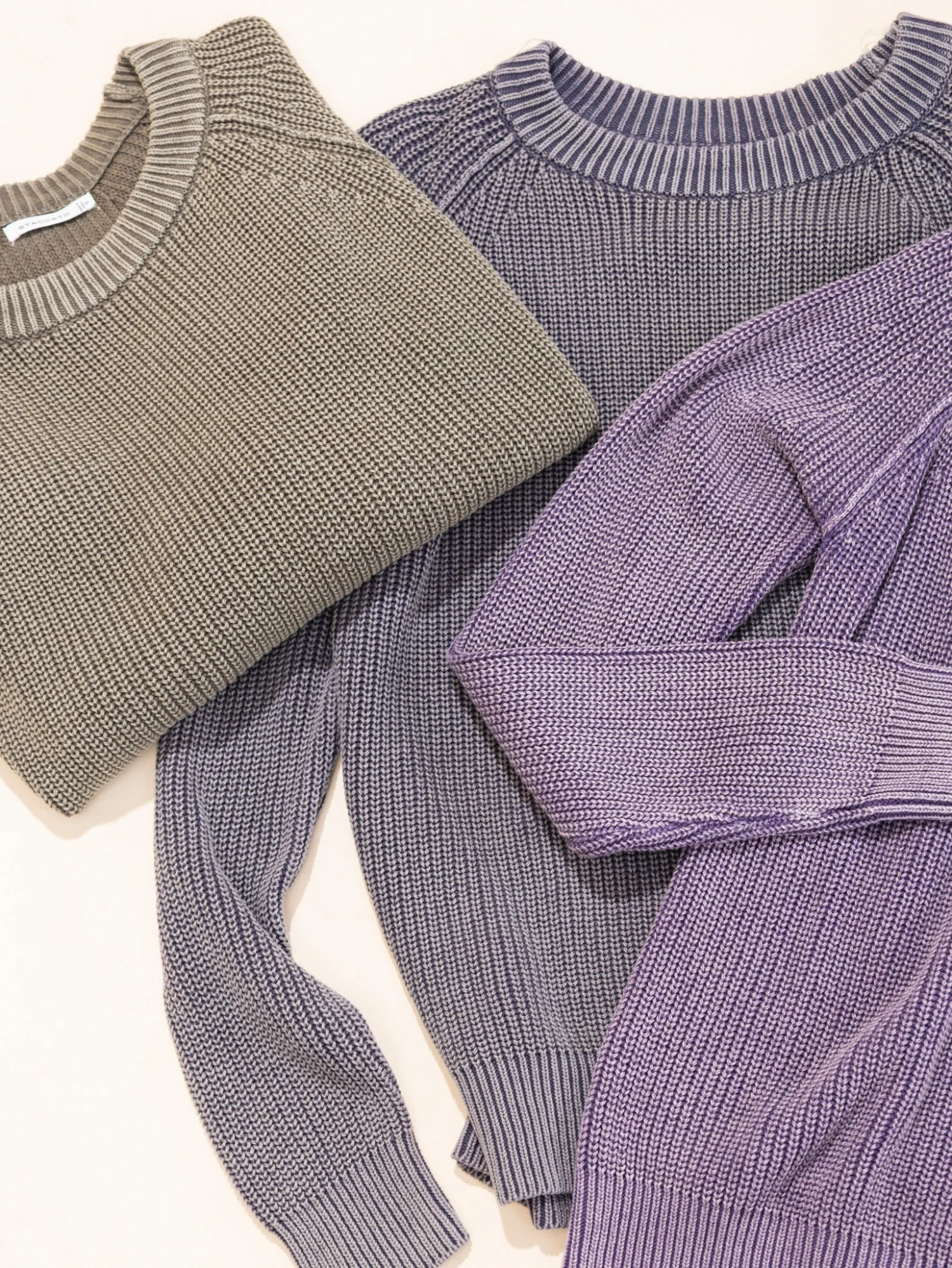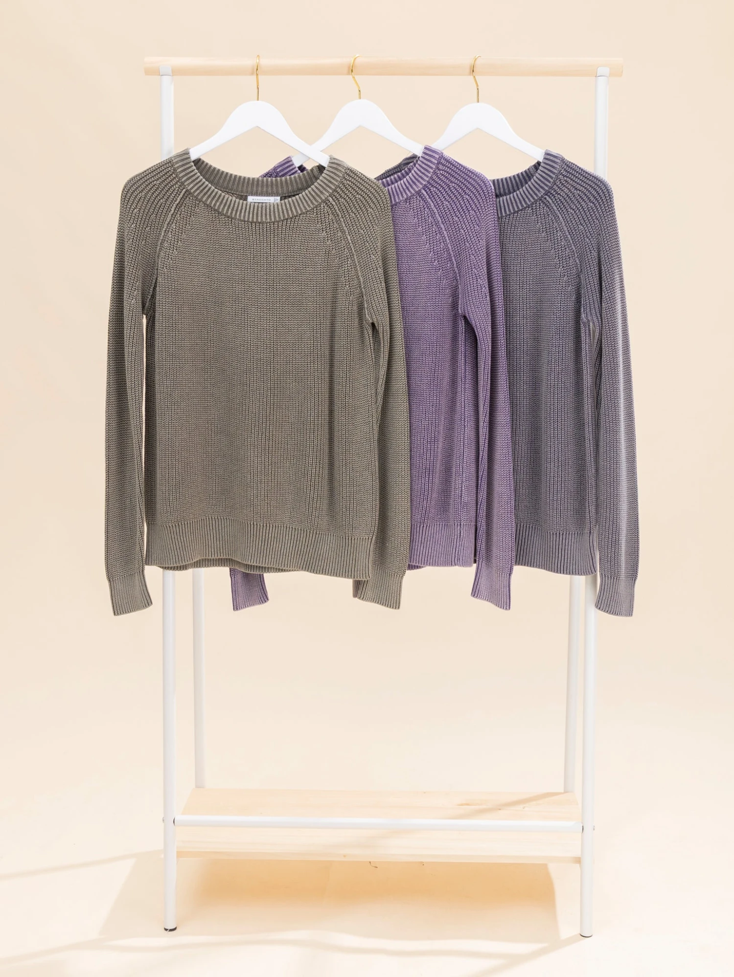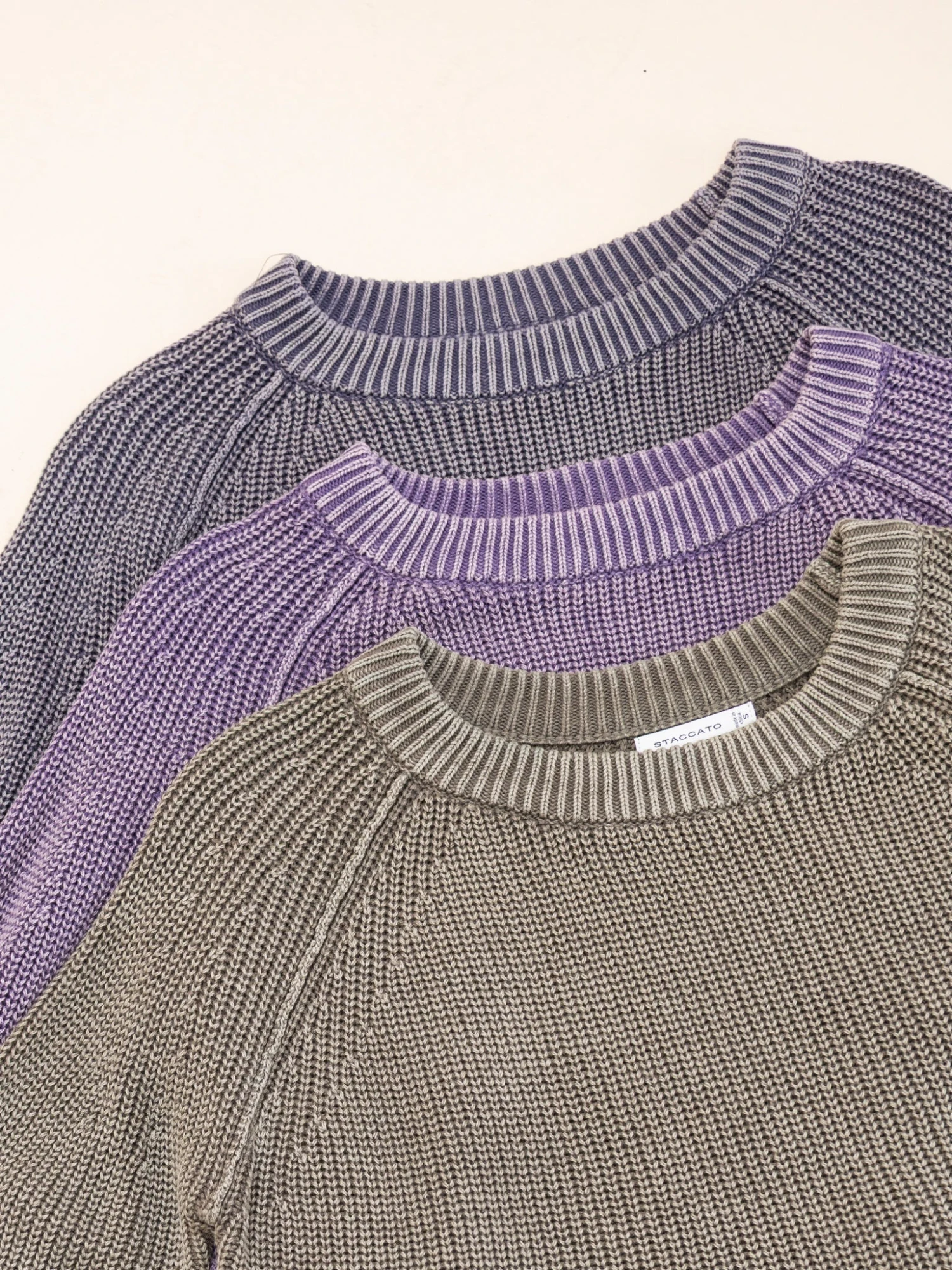 Features: Crew Neck, Long Sleeves, Textured Washed Yarn Sweater
