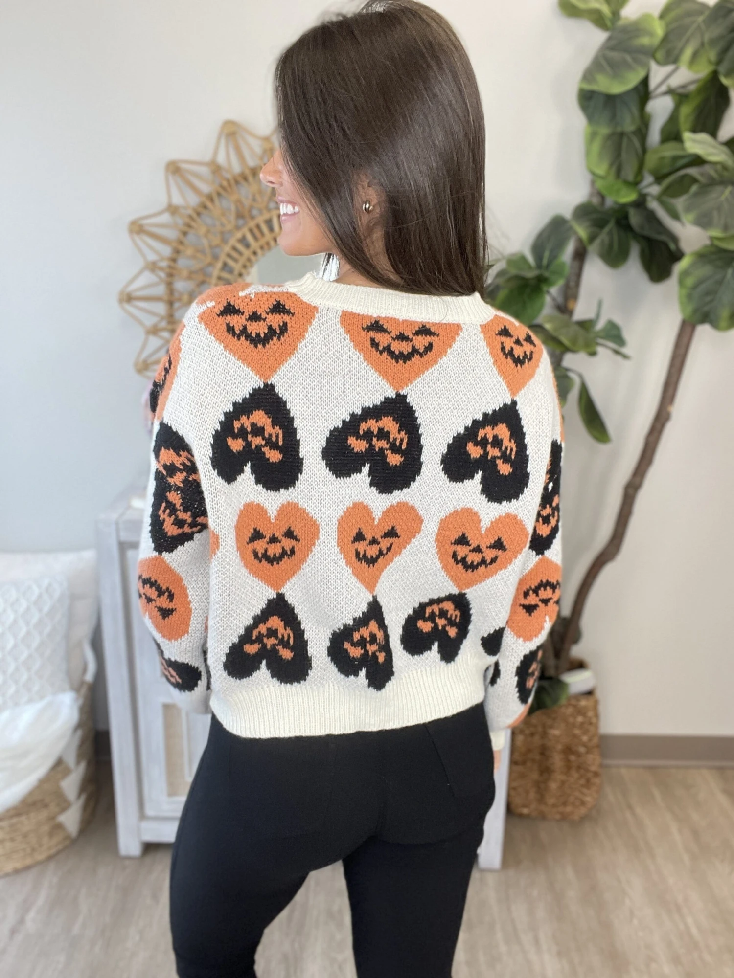 Get ready for Halloween like never before with this necessary sweater! We are so obsessed with the cute heart design and flattering fit! Perfect for spooky szn! Snag before it is too late!