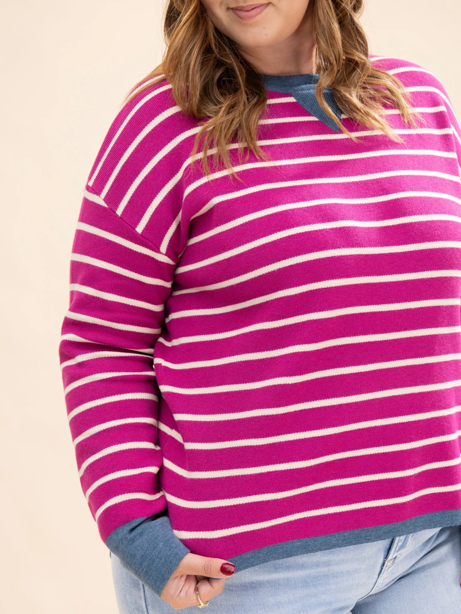Features: Crew Neck, Long Sleeves, Striped W/ Solid Trim