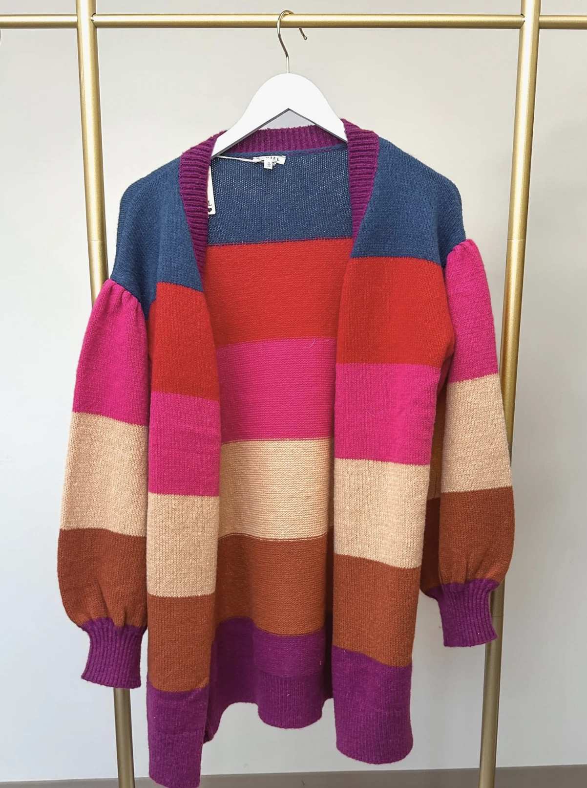 This multicolor striped cardigan is so cute! Add a splash of color to your wardrobe with this fun cardigan!