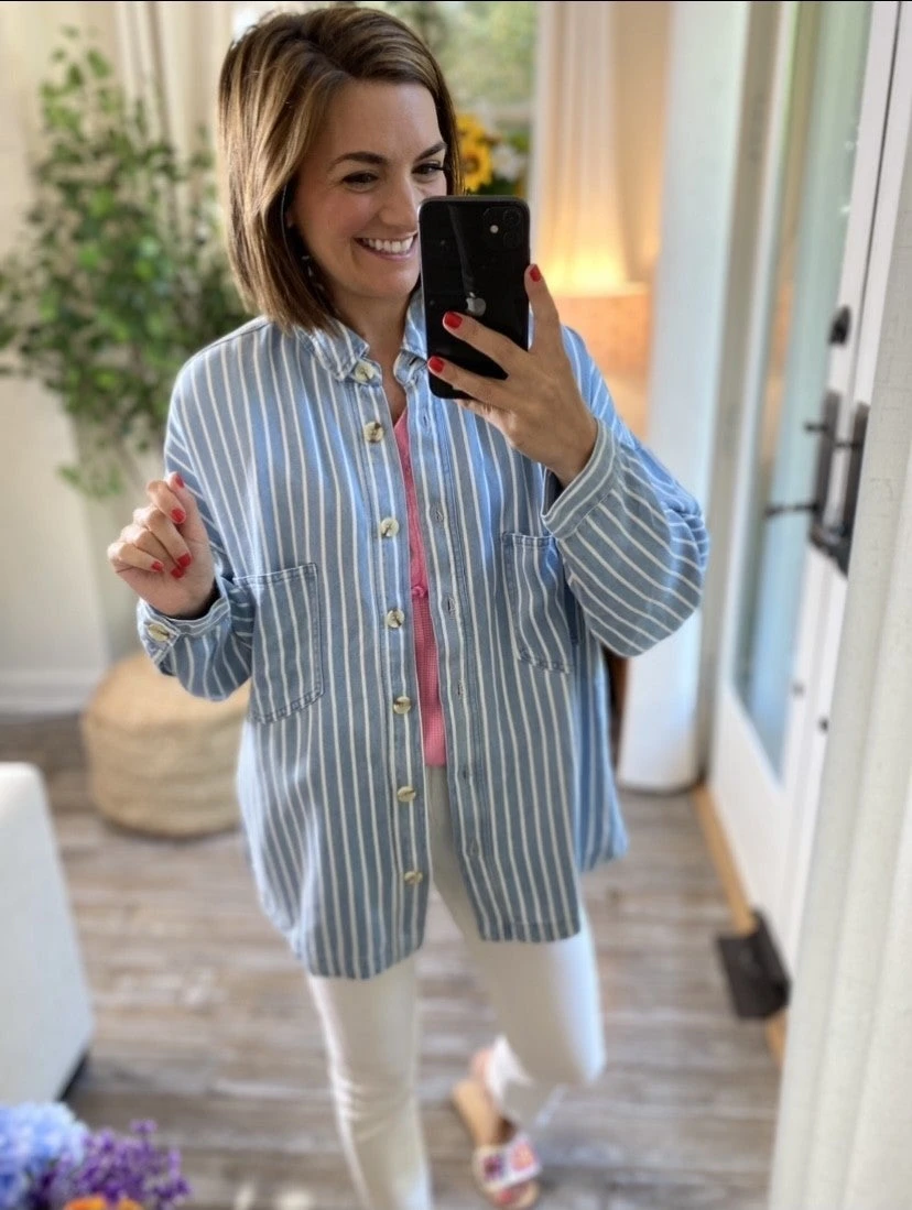 Features: Long Sleeves, Button Down, Striped, Chest Pocket