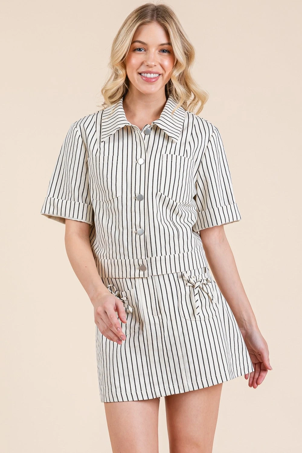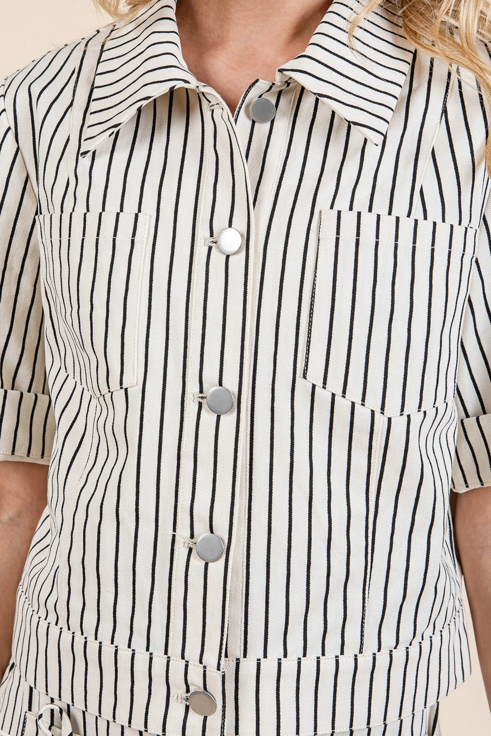 Features: Striped, Short Sleeve, Shacket
