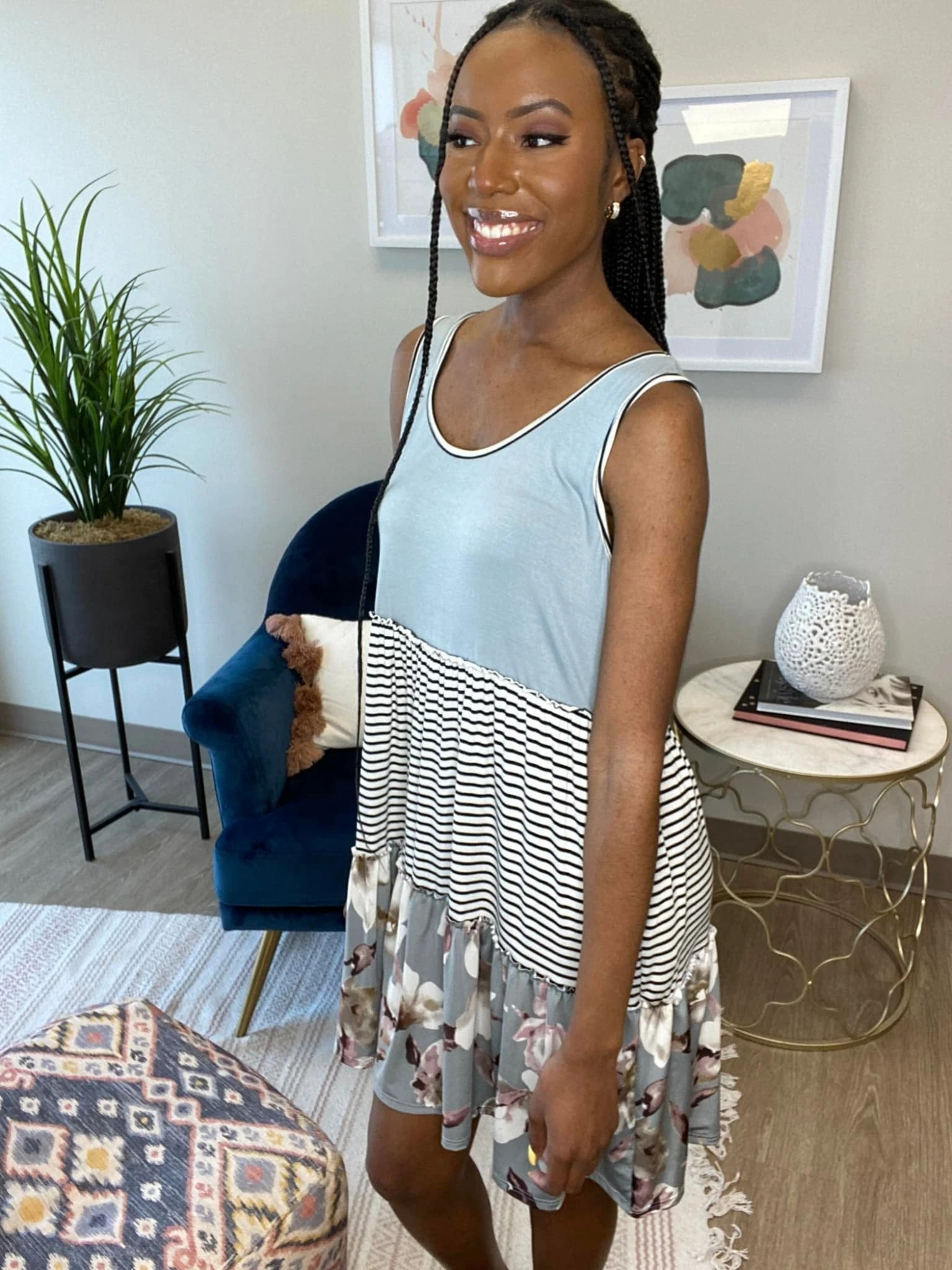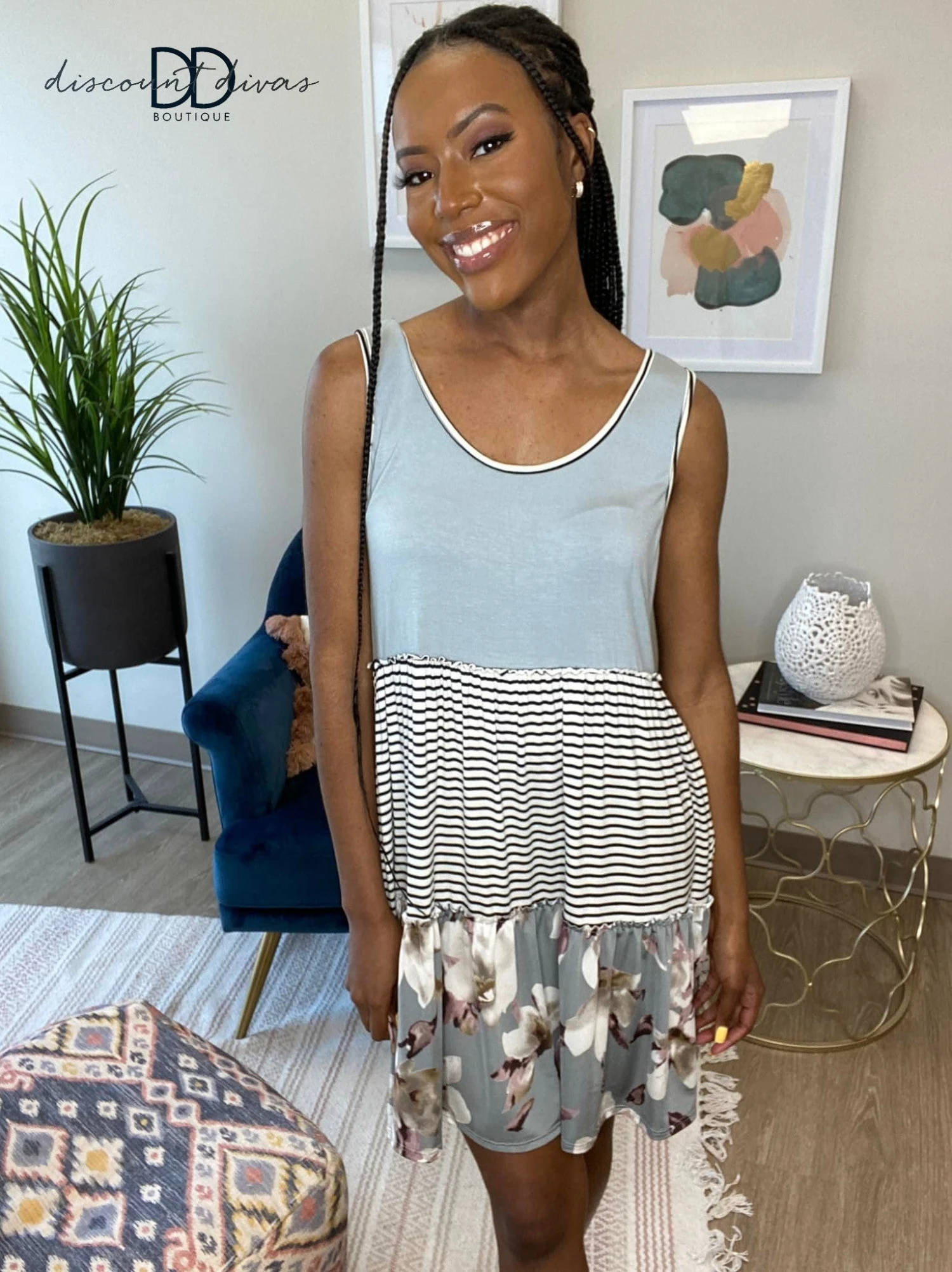 The “Style It Dress” has arrived! This sleeveless dress is perfect for summer! With a striped and floral design, you cannot go wrong here! Pair with sandals for the perfect look! These will sell out, so snag one soon!
