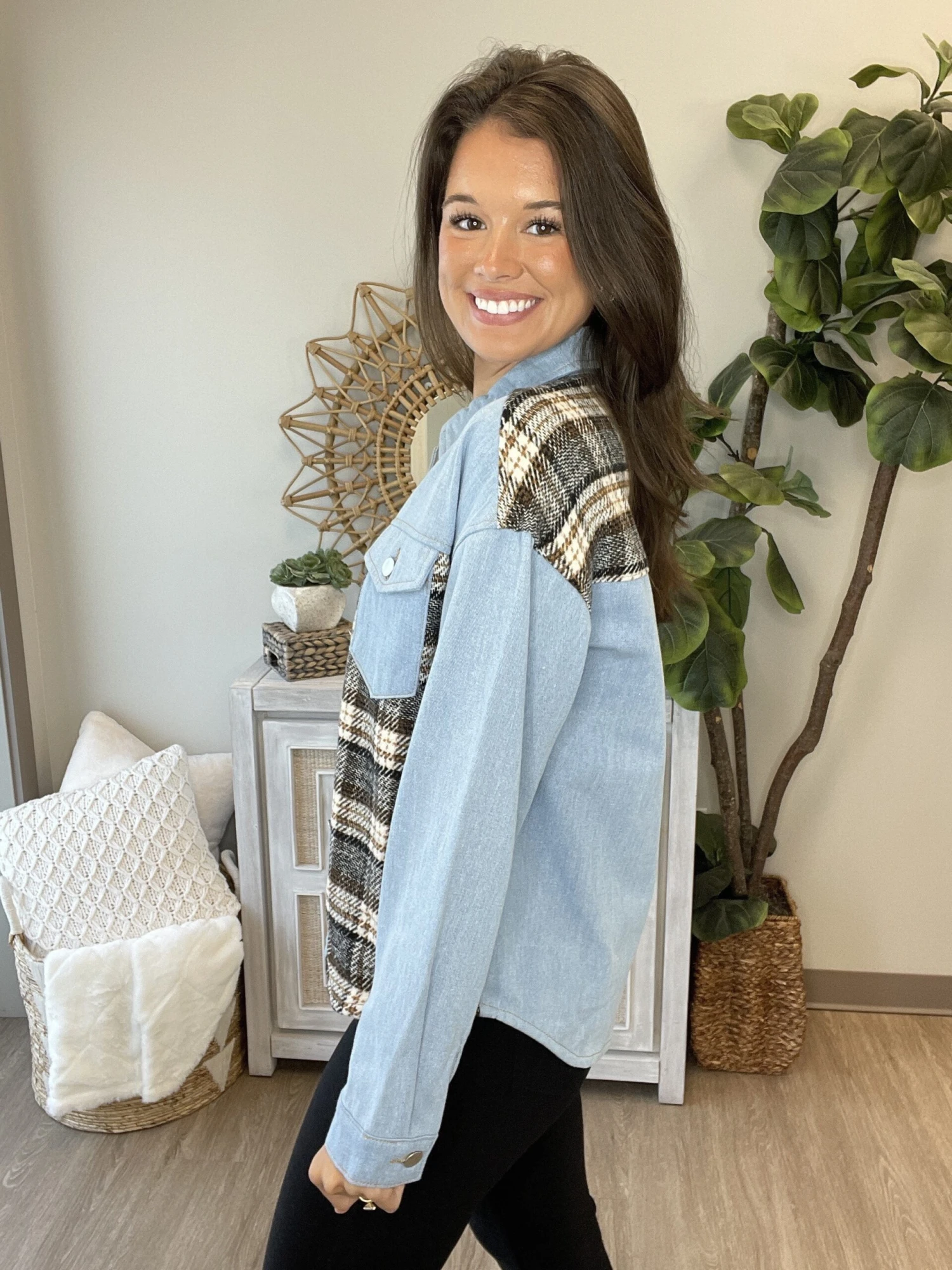 Okay ladies, this one is such a good find! The “Thankfully There Jacket” is all you could want and more! We love a good denim jacket, but add the plaid details and you know you need this one in your life! Snag one before they sell out, you know they will!