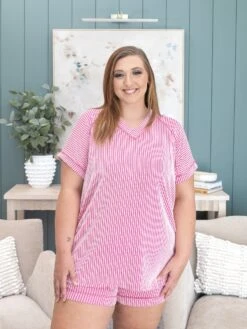 Raised Rib Short Sleeve HoodieTop & Shorts W/ Pockets Set By DD Design | S-3XL